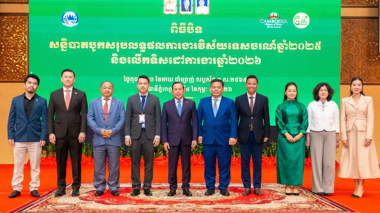 ឯកឧត្តម ហួត ហាក់ រដ្ឋមន្ត្រីក្រសួងទេសចរណ៍ អញ្ជើញជាអធិបតីក្នុងពិធីបិទសន្និបាតបូកសរុបលទ្ធផលការងារវិស័យទេសចរណ៍ឆ្នាំ២០២៥ និងលើកទិសដៅការងារឆ្នាំ២០២៦ ដែលបានឆ្លុះបញ្ចាំងពីសមិទ្ធផលយ៉ាងត្រចះត្រចង់រយៈពេលមួយឆ្នាំរបស់មហាគ្រួសារវិស័យទេសចរណ៍ ពោលគឺយើងបានរួមគ្នាពិភាក្សា វាយតម្លៃ និងឆ្លុះបញ្ចាំងយ៉ាងស៊ីជម្រៅ អំពីសមិទ្ធផល បញ្ហាប្រឈម សំណូមពរ និងកាលានុវត្តភាពនៅក្នុងវិស័យទេសចរណ៍កម្ពុជា ដោយមានចំនួនអ្នកចូលរួមយ៉ាងច្រើនកុះករ និងការផ្តល់មតិយោបល់យ៉ាងសកម្មផុសផុល ពីសំណាក់បងប្អូនសមាជិក-សមាជិកាទាំងអស់ ដើម្បីរួមគ្នាផ្តល់ជាធាតុចូលយ៉ាងសំខាន់សម្រាប់លើកទិសដៅអភិវឌ្ឍន៍វិស័យទេសចរណ៍នៅកម្ពុជា ឱ្យកាន់តែមានភាពប្រសើរឡើង។