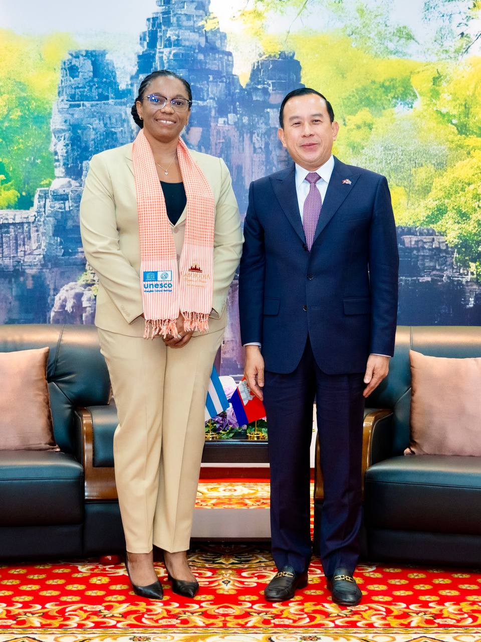 លោកជំទាវ Milena Caridad Zaldivar Piedra ឯកអគ្គរដ្ឋទូតវិសាមញ្ញ និងពេញសមត្ថភាពនៃសាធារណរដ្ឋគុយបាប្រចាំនៅព្រះរាជាណាចក្រកម្ពុជា និងសហការី ចូលជួបសម្តែងការគួរសម និងពិភាក្សាការងារស្តីពីកិច្ចសហប្រតិបត្តិការលើវិស័យទេសចរណ៍រវាងកម្ពុជា-គុយបា ក្នុងឱកាសបំពេញទស្សនកិច្ចការងាររយៈពេល២ថ្ងៃនៅព្រះរាជាណាចក្រកម្ពុជា។