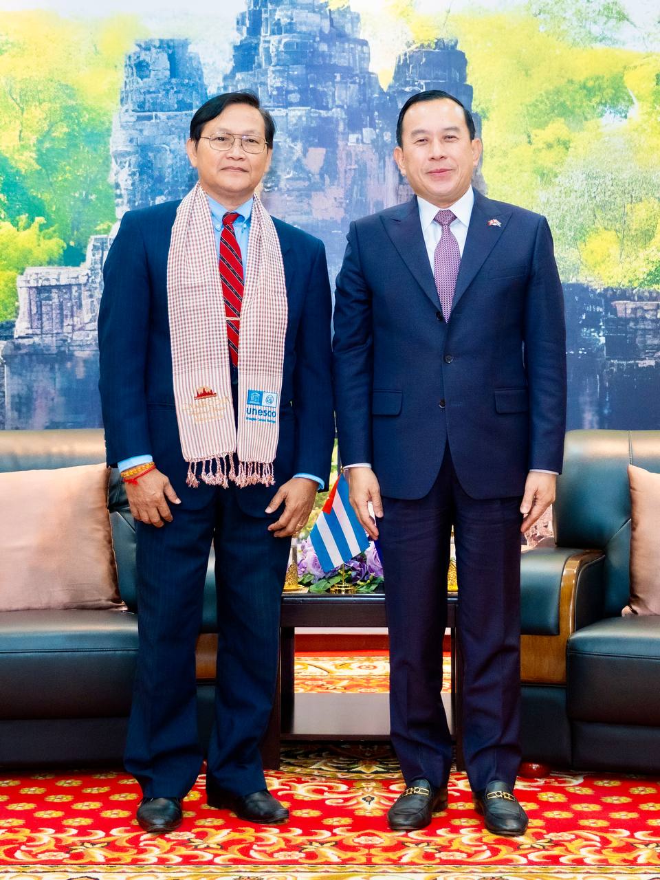 ក្នុងឱកាសនៃជំនួបប្រកបដោយផ្លែផ្កានេះ ឯកឧត្តមរដ្ឋមន្រ្តី បានជម្រាបជូនឯកឧត្តមអនុរដ្ឋមន្ត្រីទេសចរណ៍នៃសាធារណរដ្ឋគុយបា អំពីទំនាក់ទំនងការទូតដ៏ល្អរវាងកម្ពុជា និងគុយបាតាំងពីឆ្នាំ១៩៦០ ដោយគិតត្រឹមឆ្នាំ២០២៦ នេះ គឺមានរយៈពេល៦៦ឆ្នាំ។ ហើយទំនាក់ទំនងមិត្តភាពនេះ ត្រូវបានពង្រឹងពង្រីកពូនជ្រុំដោយថ្នាក់ដឹកនាំកំពូលរបស់ប្រទេសទាំងពីរជាបន្តបន្ទាប់ ដែលជាមូលដ្ឋានគ្រឹះសម្រាប់ពង្រឹង និងពង្រីកកិច្ចសហប្រតិបត្តិការលើគ្រប់វិស័យ ពិសេសលើវិស័យទេសចរណ៍ដែលប្រទេសទំាងពីរសុទ្ធតែមានសក្តានុពលទេសចរណ៍ដ៏សម្បូរបែប និងភាពរួសរាយរាក់ទាក់ បដិសណ្ឋារកិច្ចដ៏កក់ក្តៅរបស់ប្រជាជននៃប្រទេសទាំងពីរ។