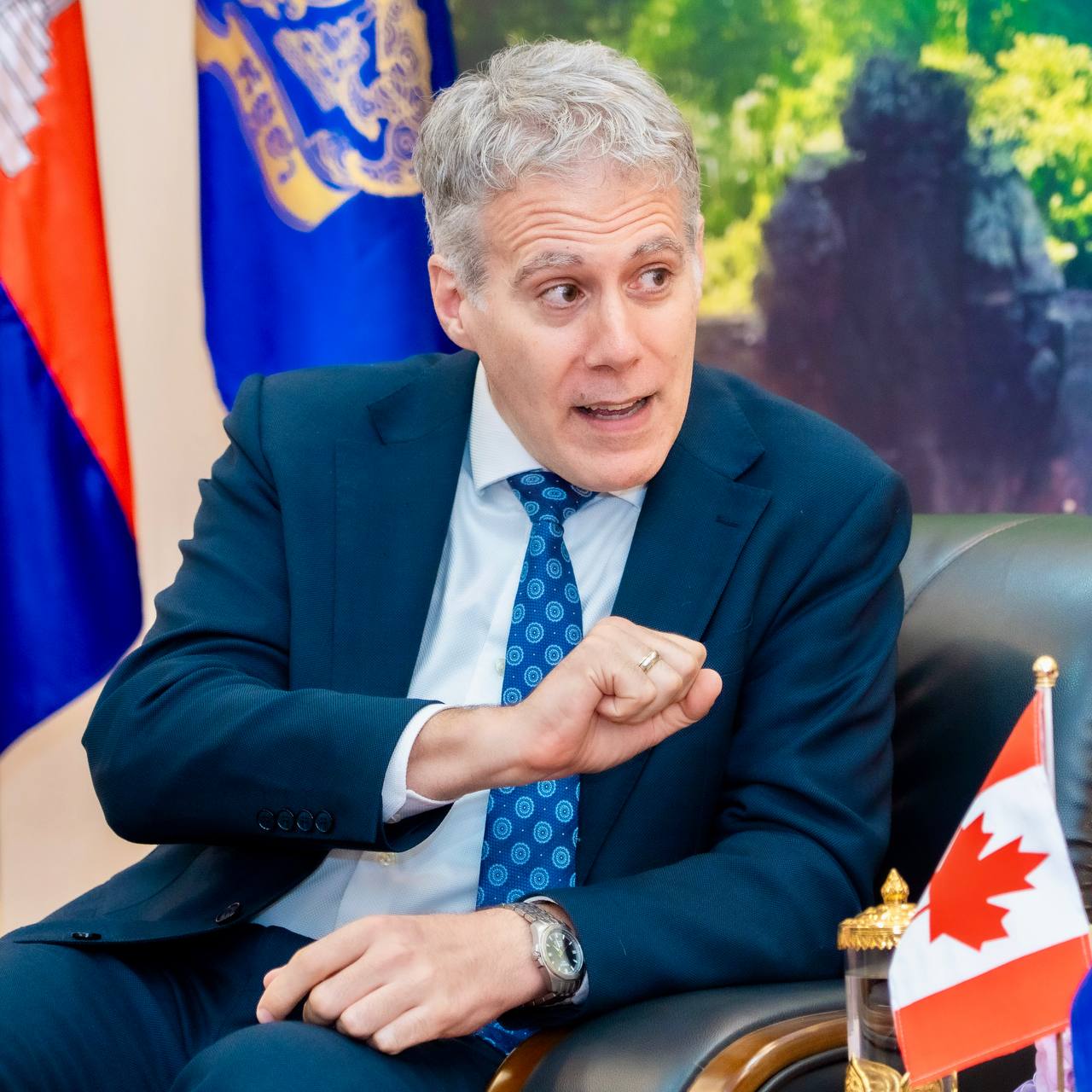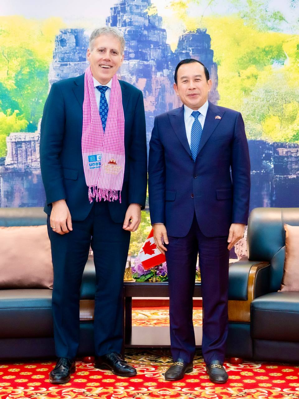 ឯកឧត្តម ហួត ហាក់ រដ្ឋមន្រ្តី ក្រសួងទេសចរណ៍ បានអនុញ្ញាតជូន ឯកឧត្តម Christian DesRoches ឯកអគ្គរដ្ឋទូតវិសាមញ្ញ និងពេញសមត្ថភាព នៃប្រទេសកាណាដា និងសហការី ចូលជួបសម្តែងការគួរសម និងពិភាក្សាការងារលើការជំរុញកិច្ចសហប្រតិបត្តិទេសចរណ៍ទ្វេភាគី និងការរៀបចំព្រឹត្តការណ៍អមក្នុងកិច្ចប្រជុំកំពូលហ្រ្វង់កូហ្វូនីលើកទី២០ ឆ្នាំ២០២៦ នៅខេត្តសៀមរាប។