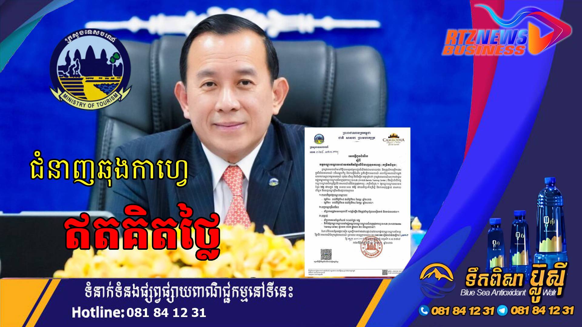 ក្រសួងទេសចរណ៍សហការជាមួយ មជ្ឈមណ្ឌលបណ្តុះបណ្តាលជំនាញឆុងកាហ្វេ B-HUB នឹងរៀបចំបើកវគ្គ បណ្តុះបណ្តាលជំនាញវិជ្ជាជីវៈទេសចរណ៍លើជំនាញឆុងកាហ្វេដោយឥតគិតថ្លៃ