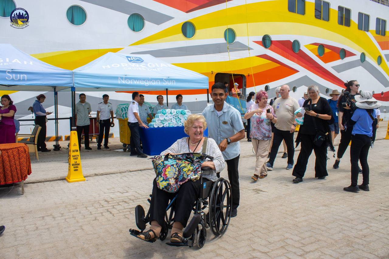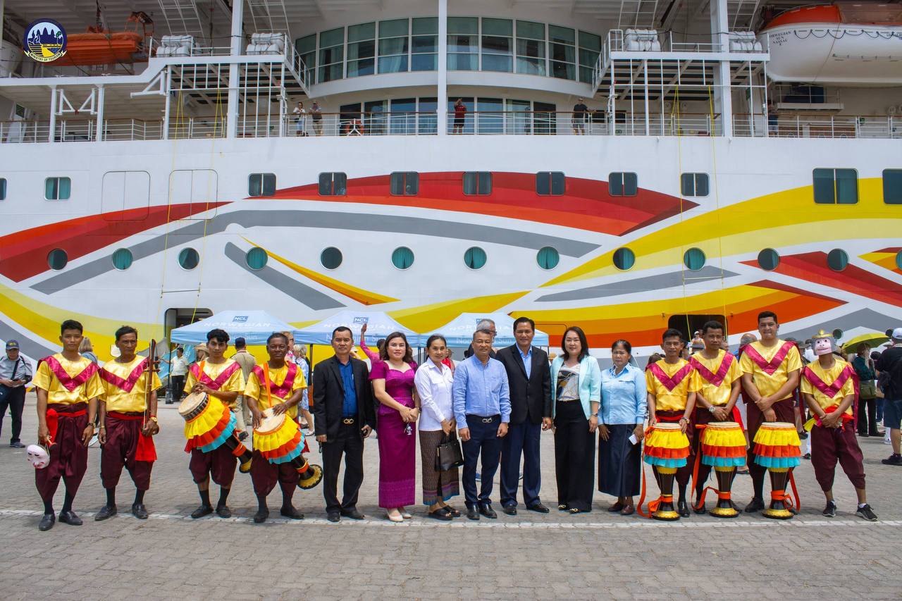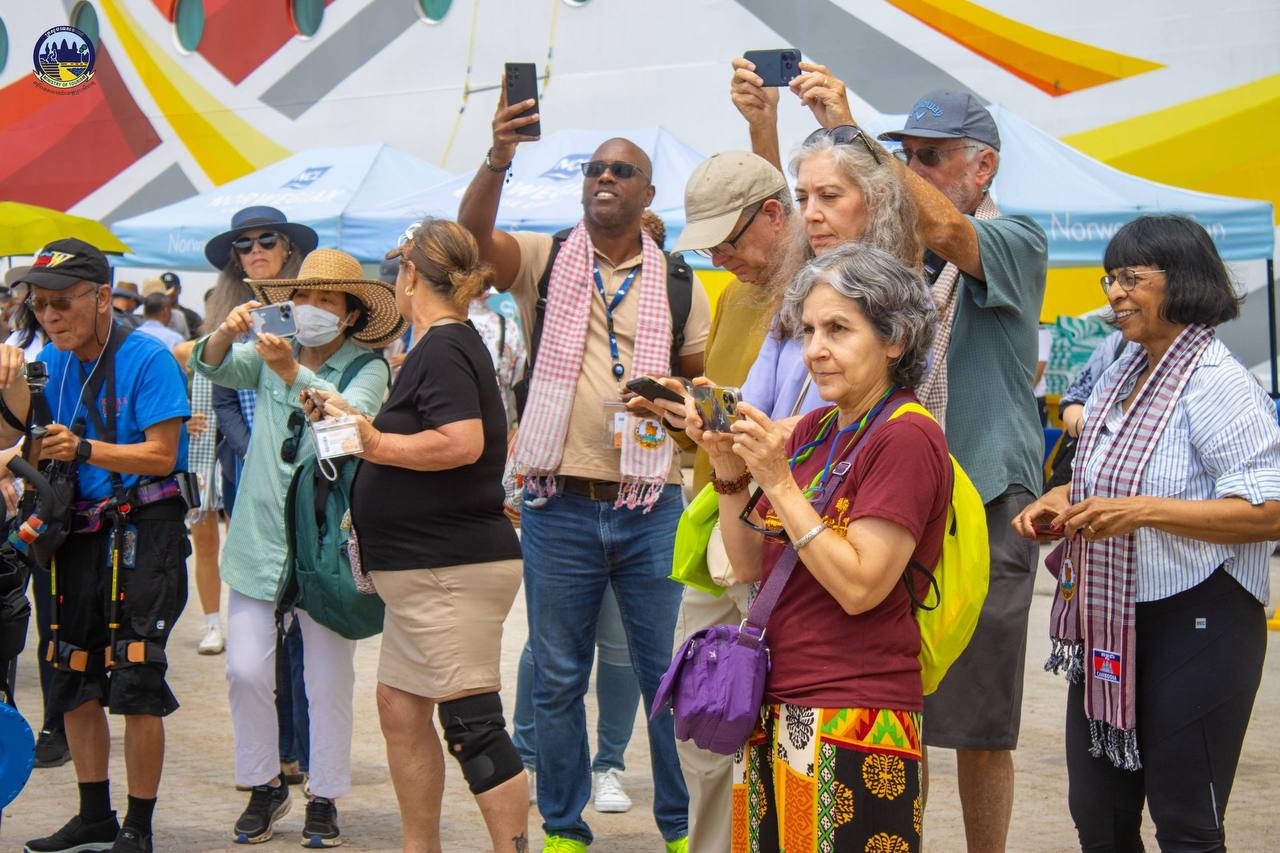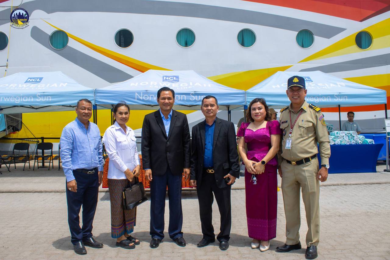 Under the guidance of H.E. HUOT Hak, Minister of Tourism, the Department of Tourism of Preah Sihanouk Province warmly welcomed 1,831 tourists from 46 nationalities and 891 crew members from 46 nationalities who disembarked from the cruise ship NORWEGIAN SUN, registered in the Bahamas, which docked safely at the Sihanoukville Autonomous Port.