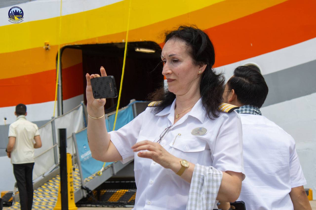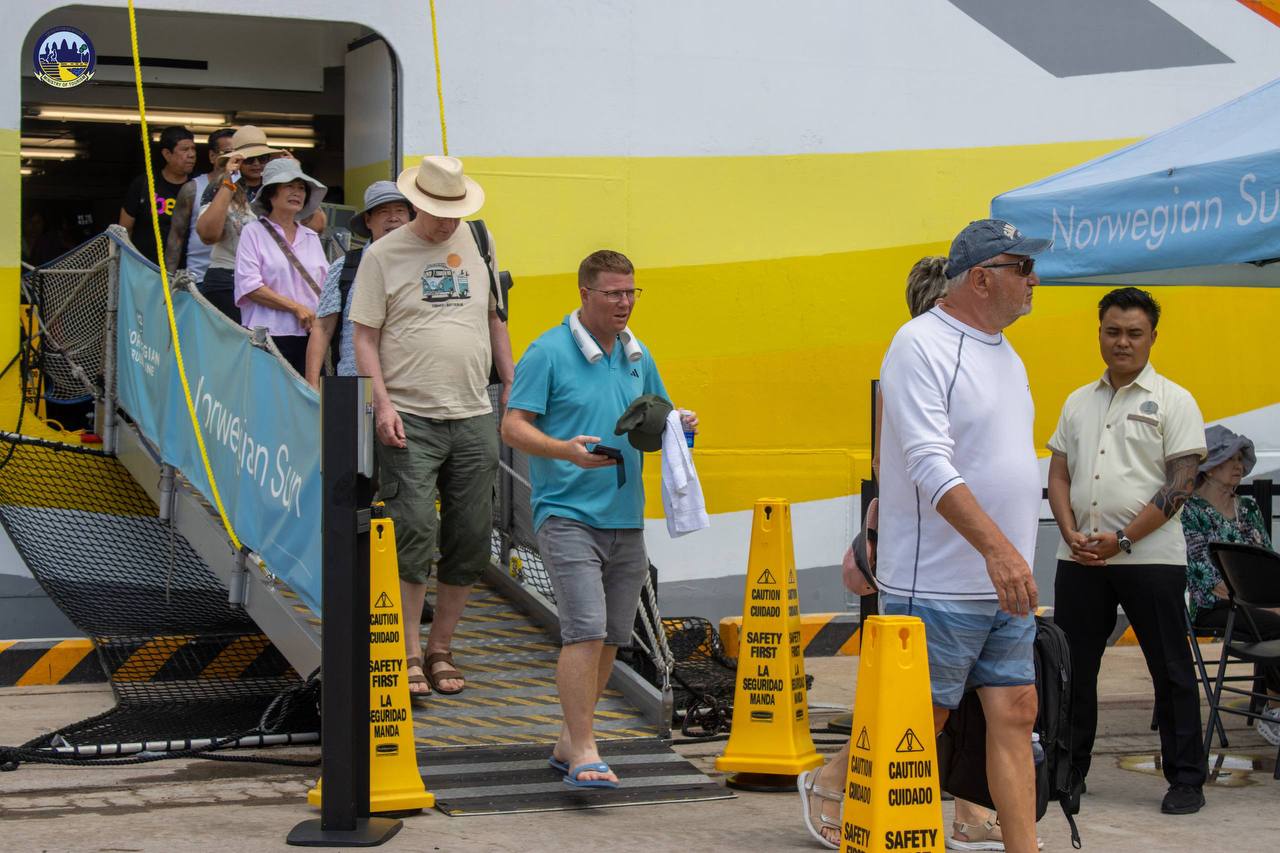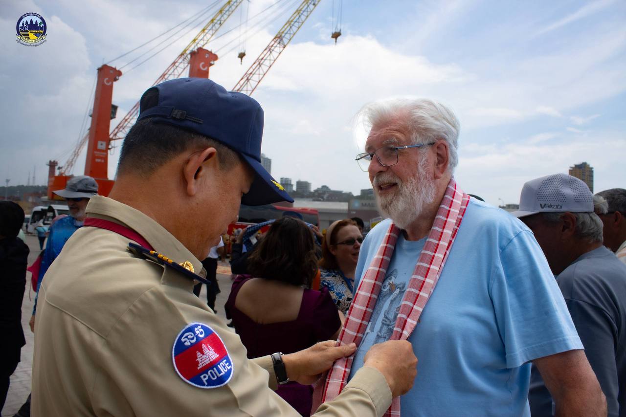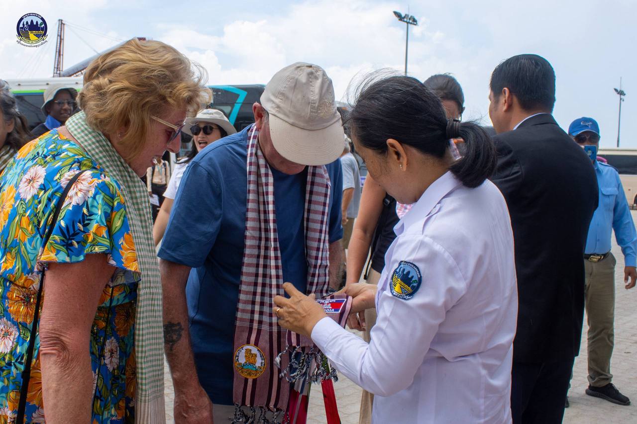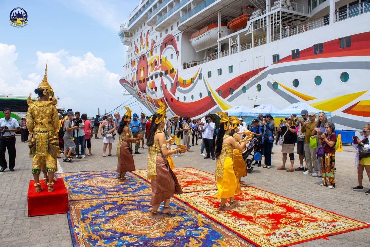 Under the guidance of H.E. HUOT Hak, Minister of Tourism, the Department of Tourism of Preah Sihanouk Province warmly welcomed 1,831 tourists from 46 nationalities and 891 crew members from 46 nationalities who disembarked from the cruise ship NORWEGIAN SUN, registered in the Bahamas, which docked safely at the Sihanoukville Autonomous Port.