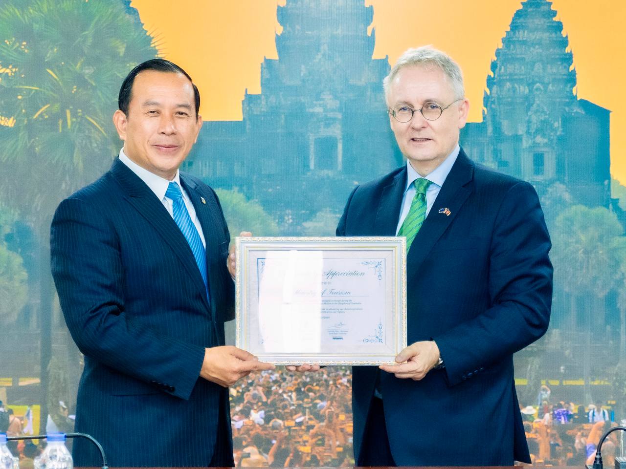 ក្នុងឱកាសនៃជំនួបនេះ គណៈប្រតិភូក្រុមប្រឹក្សាធុរកិច្ចសហភាពអឺរ៉ុប-អាស៊ាន (EU-ABC) និងសភាពាណិជ្ជកម្មអឺរ៉ុបប្រចាំកម្ពុជា (EUROCHAM) បានបញ្ជាក់ពីការប្តេជ្ញាបន្តកិច្ចសហប្រតិបត្តិការជាមួយរាជរដ្ឋាភិបាលកម្ពុជា ក៏ដូចជាក្រសួងទេសចរំណ៍ក្នុងការអភិវឌ្ឍវិស័យទេសចរណ៍របស់កម្ពុជាស្តែងតាមរយៈការបណ្តាក់ទុននិងការពង្រីកអាជីវកម្មរបស់សមាជិកខ្លួននៅកម្ពុជាជាង៣០ឆ្នំាមកហើយ។