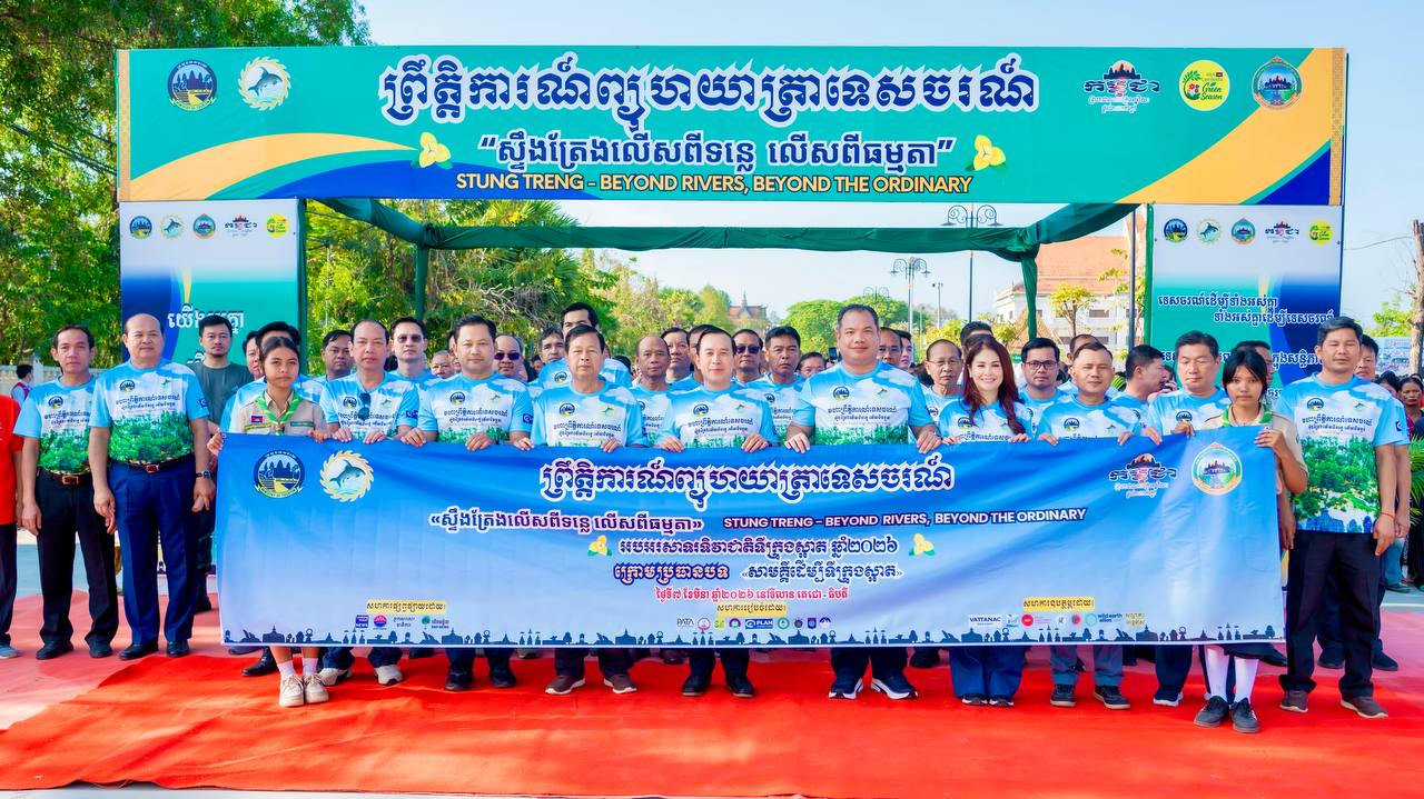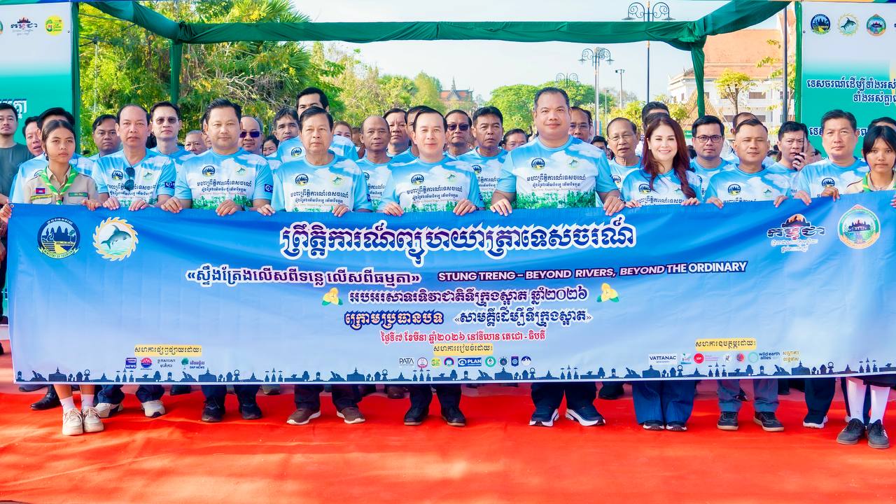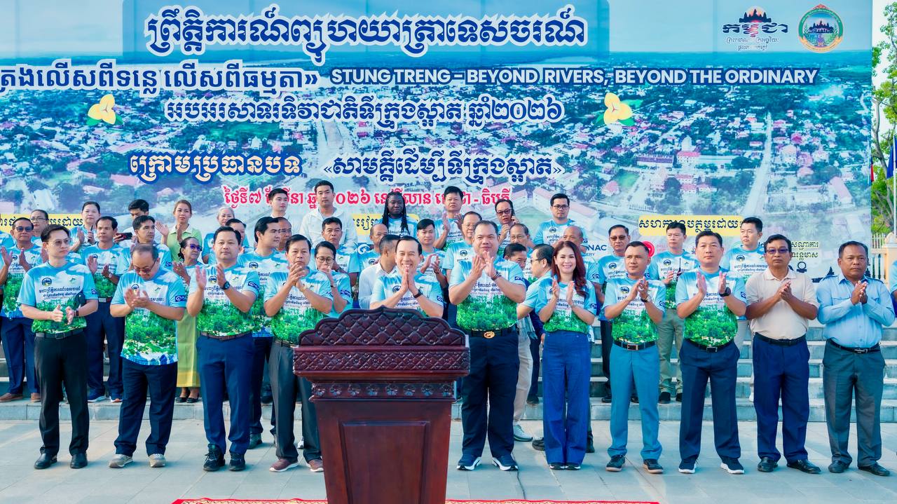 ឯកឧត្តម ហួត ហាក់ រដ្ឋមន្ត្រីក្រសួងទេសចរណ៍ រួមជាមួយ ឯកឧត្តម សរ សុពុត្រា អភិបាលនៃគណៈអភិបាលខេត្តស្ទឹងត្រែង អញ្ជើញជាអធិបតីក្នុងពិធីបើកព្រឹត្តិការណ៍ព្យុហយាត្រាទេសចរណ៍ ចម្ងាយ ៣,៥ គីឡូម៉ែត្រ ដើម្បីអបអរសាទរទិវាជាតិទីក្រុងស្អាត ឆ្នាំ២០២៦ ជាមួយនឹងការប្រកាសដាក់ឱ្យអនុវត្តជាផ្លូវការ «ផែនការអភិវឌ្ឍន៍ទេសចរណ៍ខេត្តស្ទឹងត្រែងឆ្នាំ២០២៦-២០៣០ » និងការដាក់ចេញប្រេនឌីងថ្មី «ស្ទឹងត្រែងលើសពីទន្លេ លើសពីធម្មតា» ក្រោមបរិយាកាសដ៏អធិកអធមក្រៃលែង។
