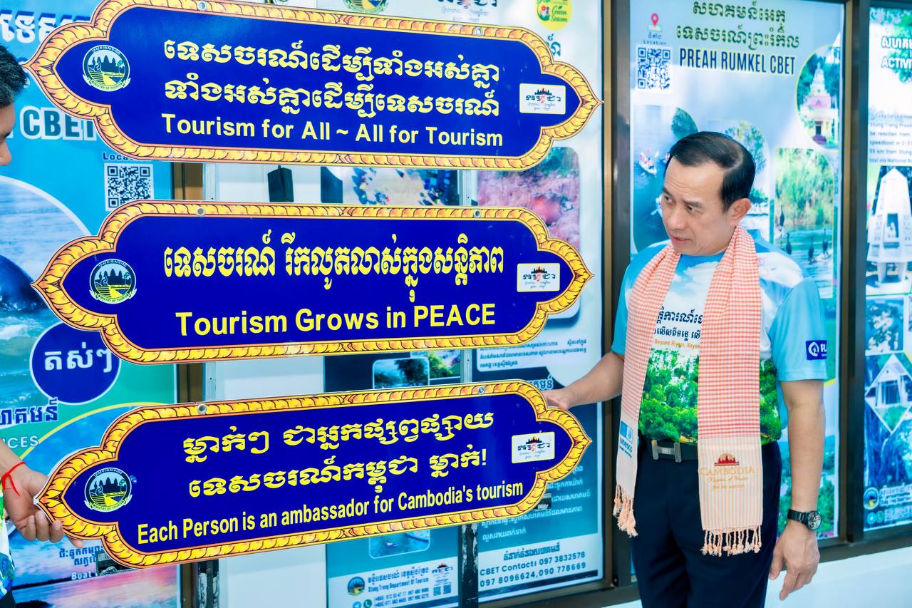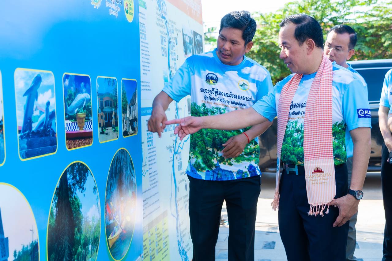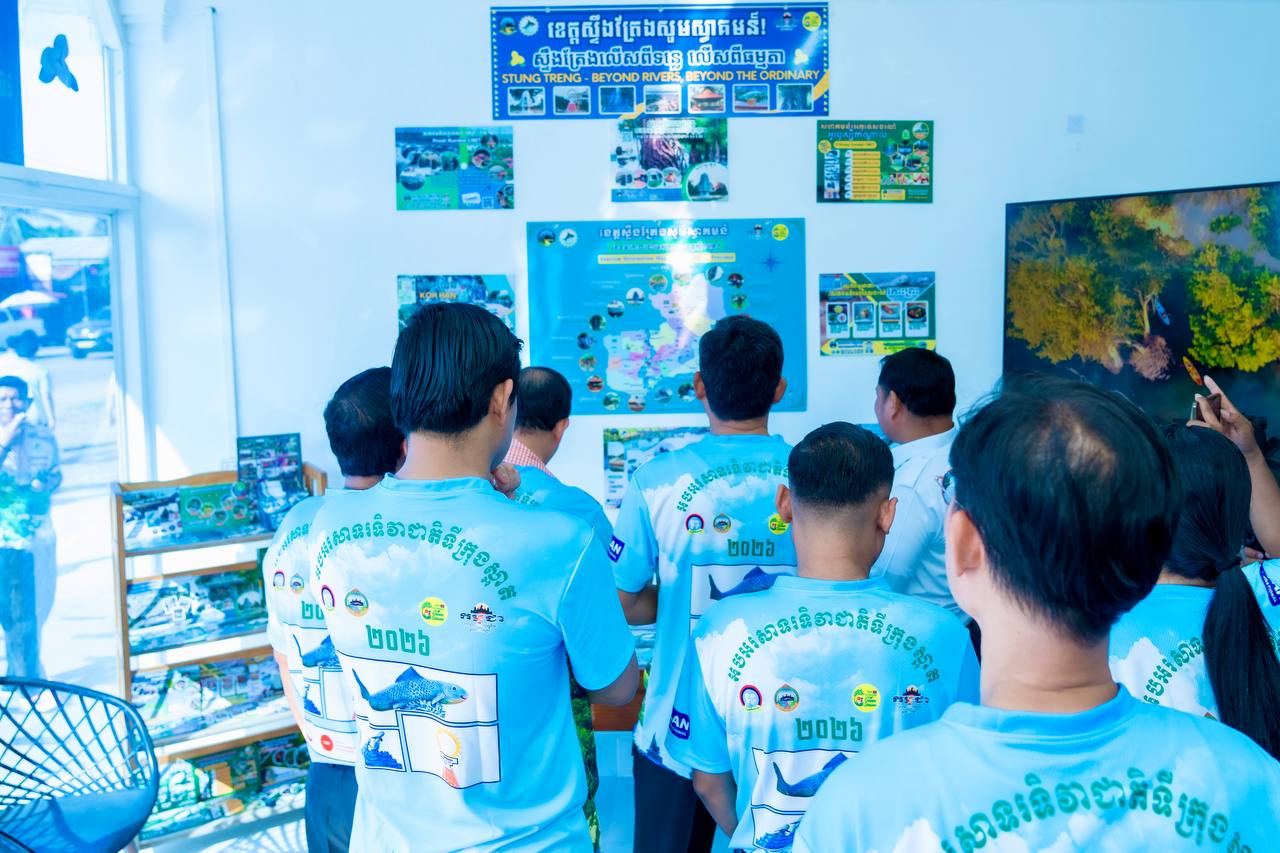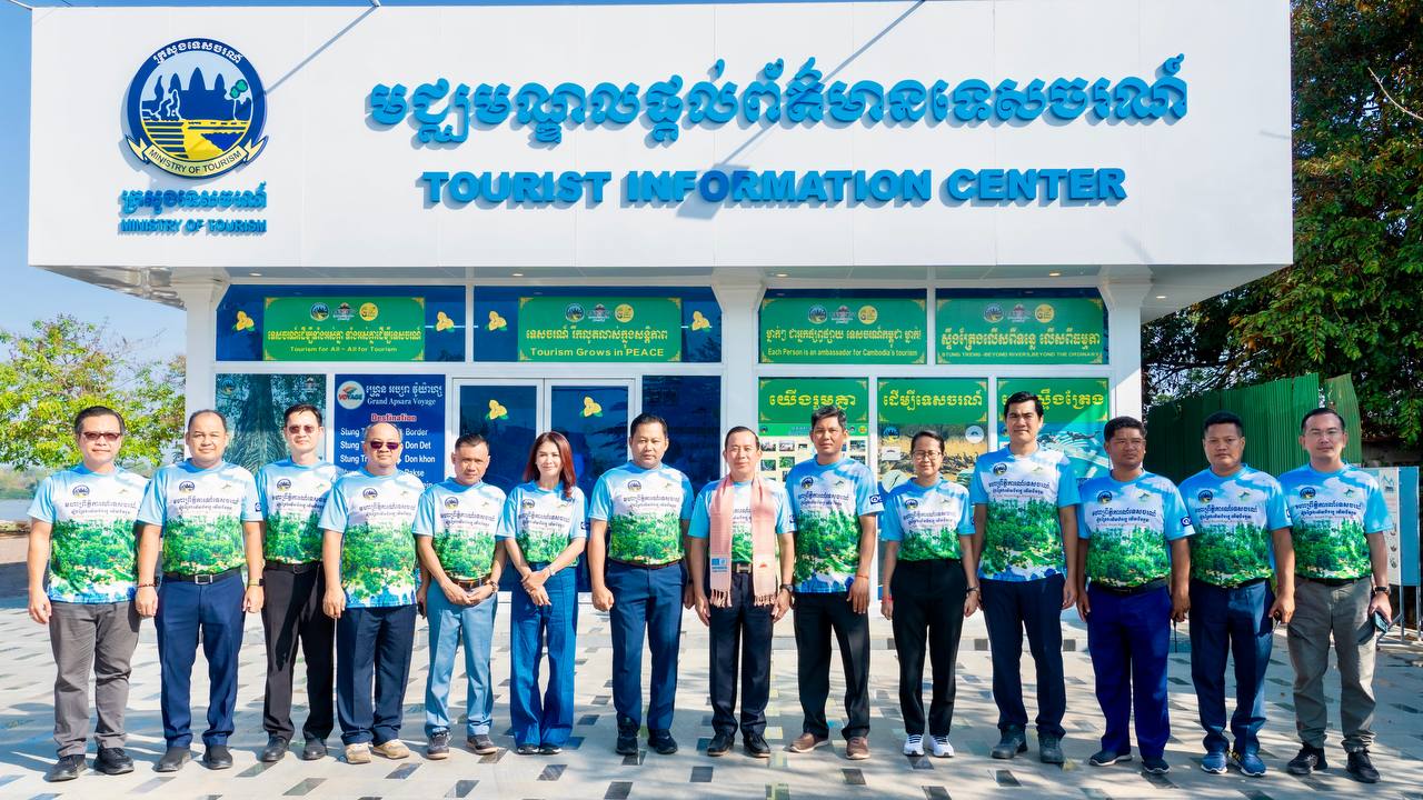 H.E. HUOT Hak, Minister of Tourism, visited and inspected the actual situation at the Stung Treng Provincial Tourism Information Center. This center plays an important role in providing information about the province’s diverse and high-potential tourism destinations. It also displays maps, tourism magazines, and various informational materials that help visitors gain more knowledge about the culture, history, and livelihoods of the people in Stung Treng Province. Providing accurate information and quality services helps promote the tourism sector and attract more national and international tourists to visit the province.