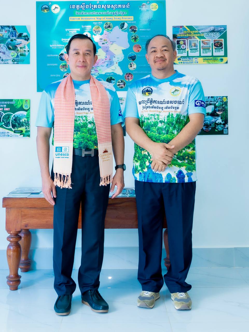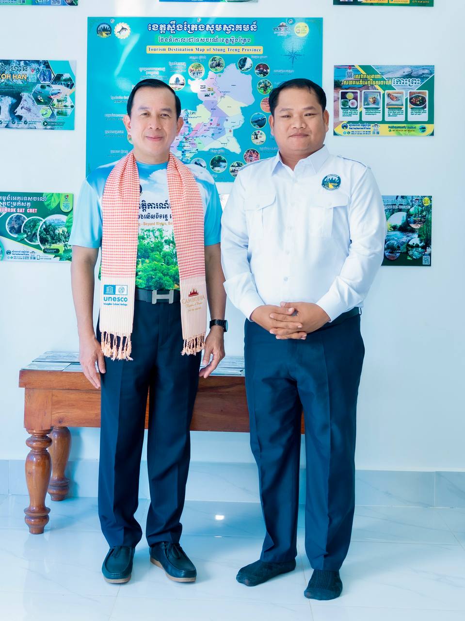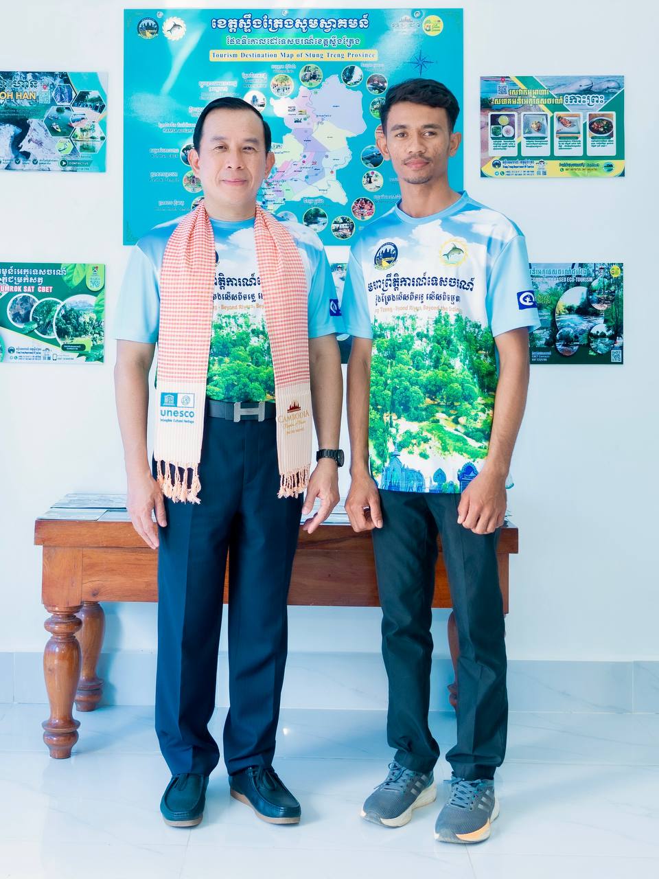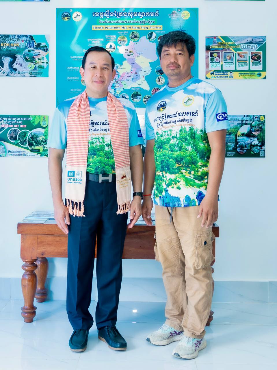 H.E. HUOT Hak, Minister of Tourism, visited and inspected the actual situation at the Stung Treng Provincial Tourism Information Center. This center plays an important role in providing information about the province’s diverse and high-potential tourism destinations. It also displays maps, tourism magazines, and various informational materials that help visitors gain more knowledge about the culture, history, and livelihoods of the people in Stung Treng Province. Providing accurate information and quality services helps promote the tourism sector and attract more national and international tourists to visit the province.