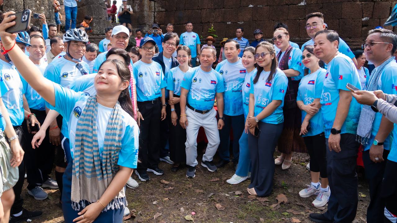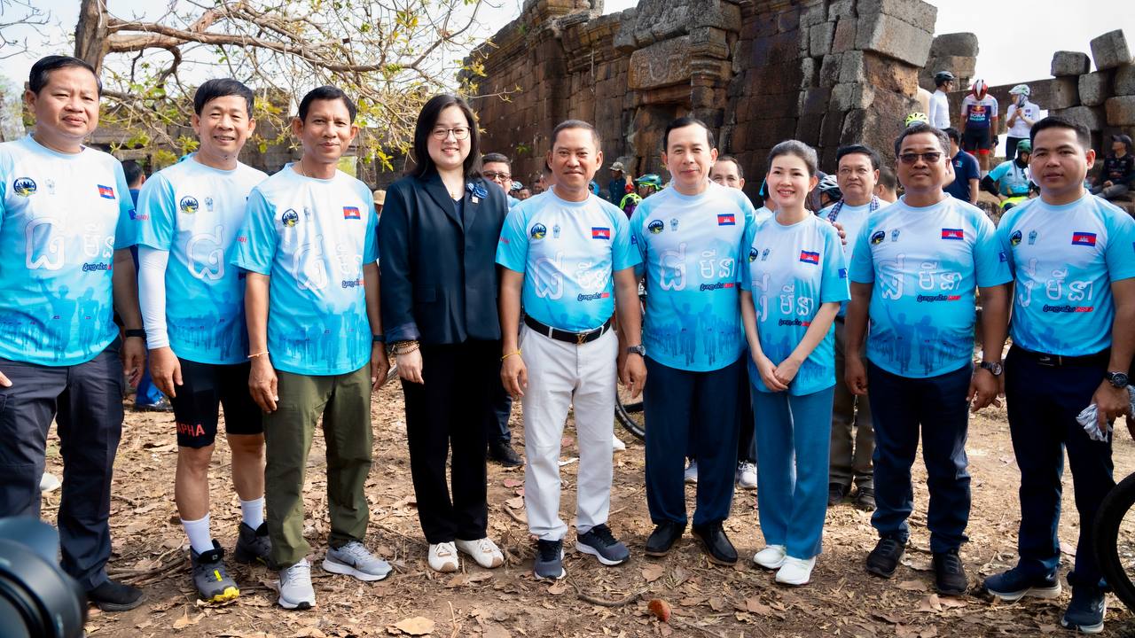 On the occasion of the ‘Phnom Penh–Takeo’ 78-kilometer cycling event under the theme ‘Tourism grows in Peace.’, H.E. HUOT Hak Minister of Tourism, together with his spouse, and H.E. Vei Samnang, Governor of the Provincial Administration of Takeo, conducted an on-site inspection at Phnom Chisor Resort, a well-known historical tourism destination that reflects the presence of ancient temples and valuable cultural and civilizational heritage in Takeo Province.
