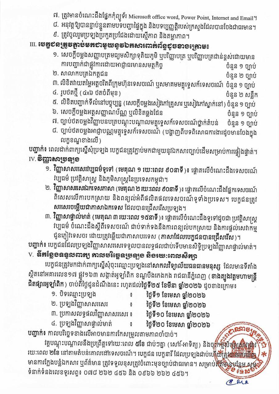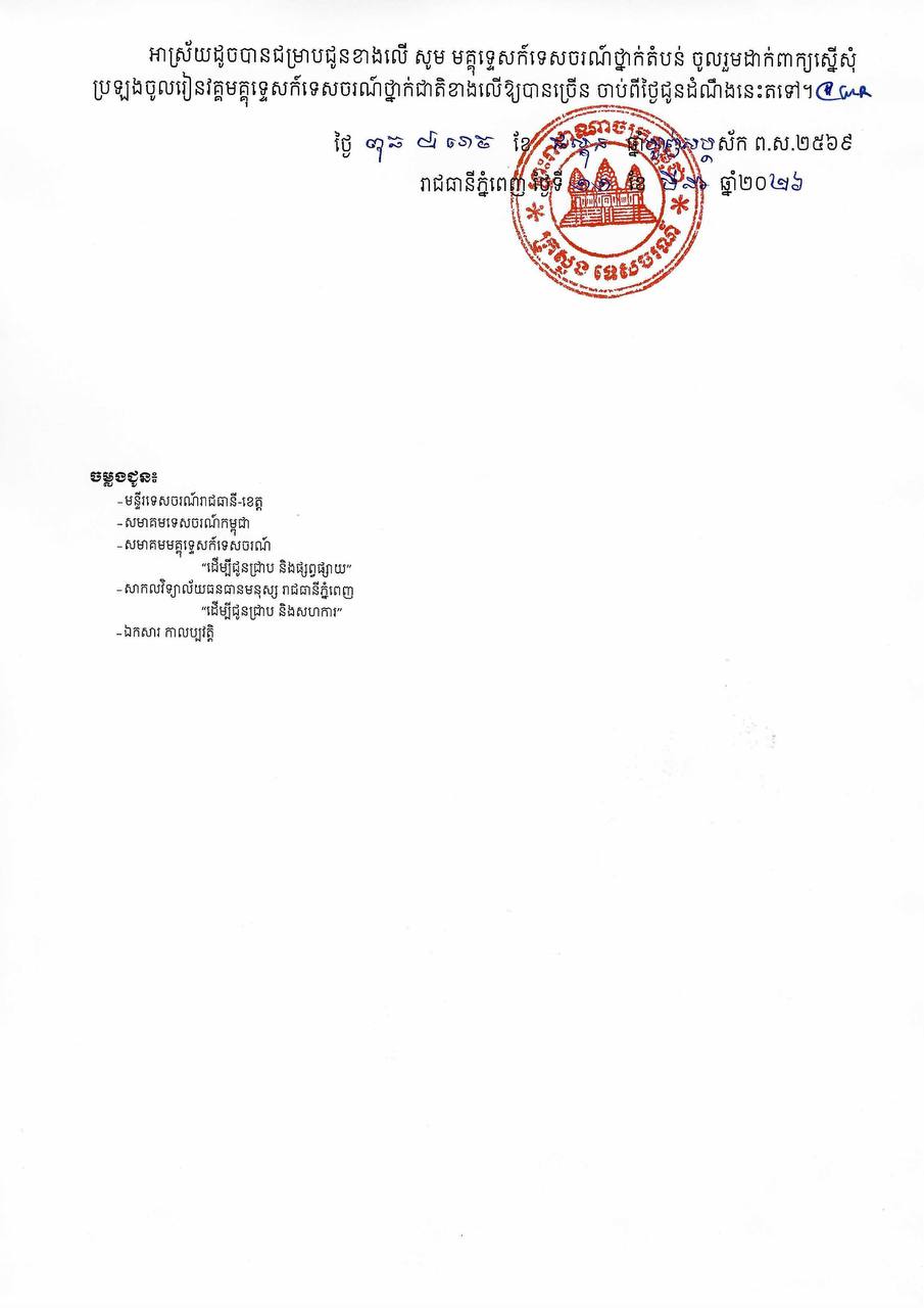 សម្រាប់ព័ត៌មានបន្ថែម សូមទំនាក់ទំនងទូរសព្ទលេខ៖ ០៧៨ ២៦២ ៤៥៦ និង ០៩៦៦ ២៦២ ៤៥៦ ឬអានព័ត៌មានលម្អិតក្នុងសេចក្តីជូនដំណឹង។