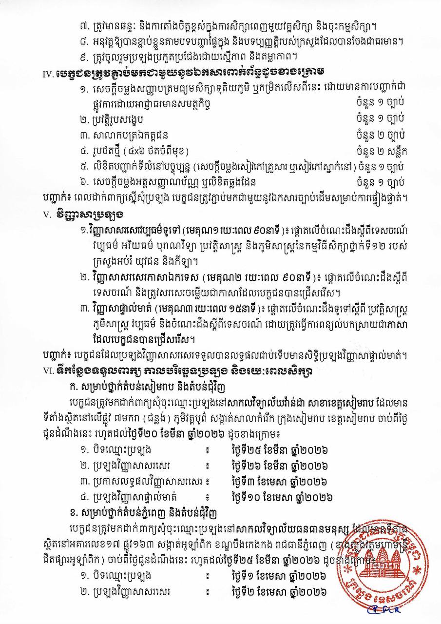 សម្រាប់បេក្ខជន បេក្ខនារី ដែលមានចំណាប់អារម្មណ៍ចូលរួមប្រឡងសូមទំនាក់ទំនងសាកសួរព័ត៌មានបន្ថែម តាមរយៈទូរសព្ទលេខ៖ ០៧៨ ២៦២ ៤៥៦ និង ០៩៦៦ ២៦២ ៤៥៦ ឬអានព័ត៌មានលម្អិតក្នុងសេចក្តីជូនដំណឹង។