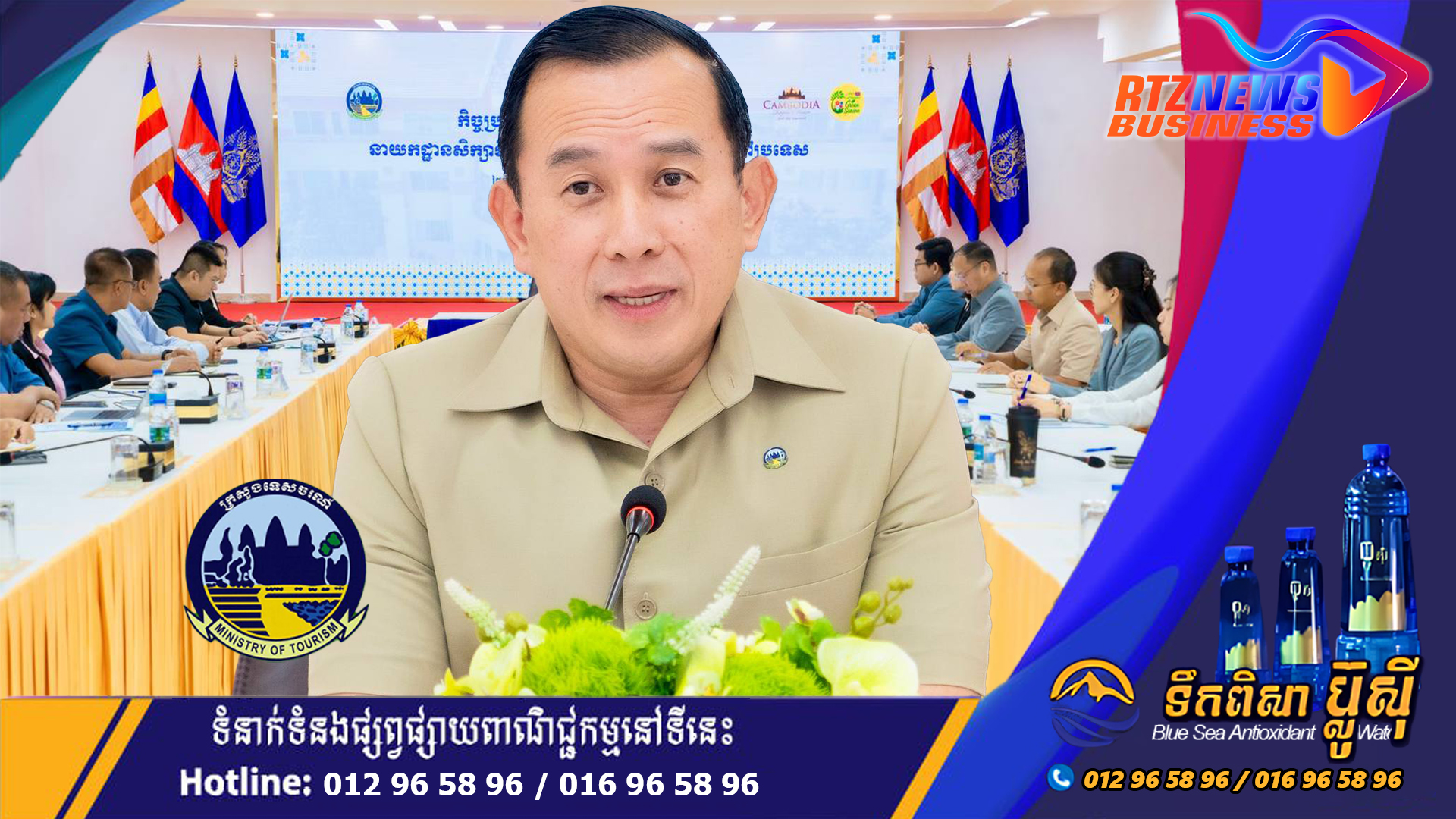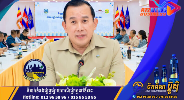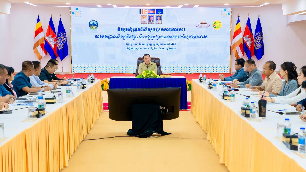 H.E. HUOT Hak, Minister of Tourism, presided over a meeting to review the work progress of the Department of Overseas Tourism Marketing and Promotion. The meeting aimed to strengthen capacity in market research, promotion, digital transformation, and the application of AI technology by assessing strengths, weaknesses, challenges, addressing requests, and setting out directions for future work.