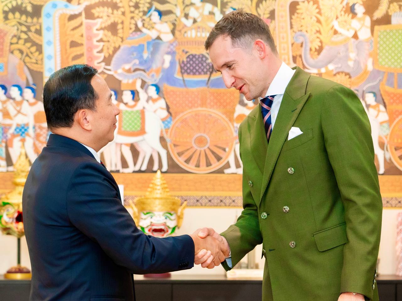 ឯកឧត្តម ហួត ហាក់ រដ្ឋមន្រ្តីក្រសួងទេសចរណ៍ បានអនុញ្ញាតជូនលោក Andreas Sumper អនុប្រធានបេសកកម្មស្ថានទូតអូទ្រីសប្រចាំកម្ពុជា លោក Max Gridling អគ្គកុងស៊ុលកិត្តិយសអូទ្រីស និងលោក Christian-Petru Ciochirca នាយកប្រតិបត្តិនៃក្រុមហ៊ុន M8 M8imize GmbH ចូលជួបសម្តែងការគួរសម និងពិភាក្សាការងារស្តីពីកិច្ចសហប្រតិបត្តិការលើវិស័យទេសចរណ៍ក្នុងឱកាសនៃបេសកកម្មពាណិជ្ជកម្មមកប្រទេសកម្ពុជា នៅទីស្តីការក្រសួងទេសចរណ៍។