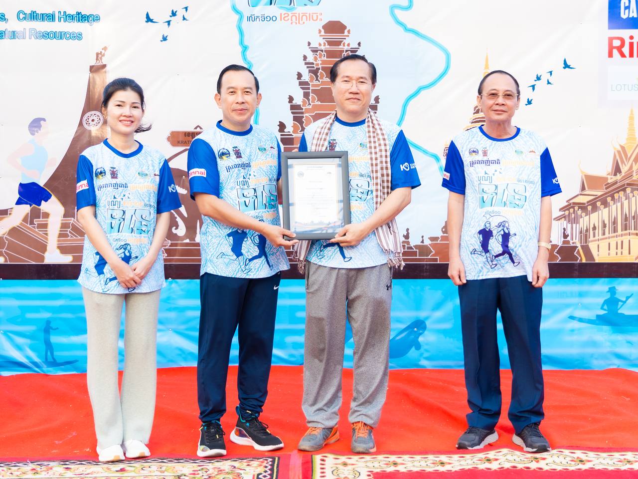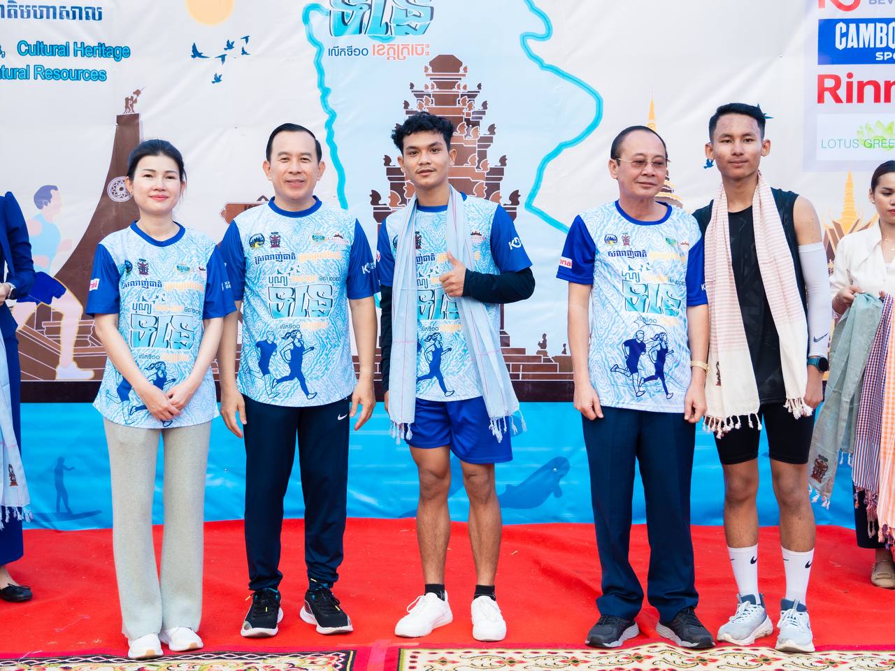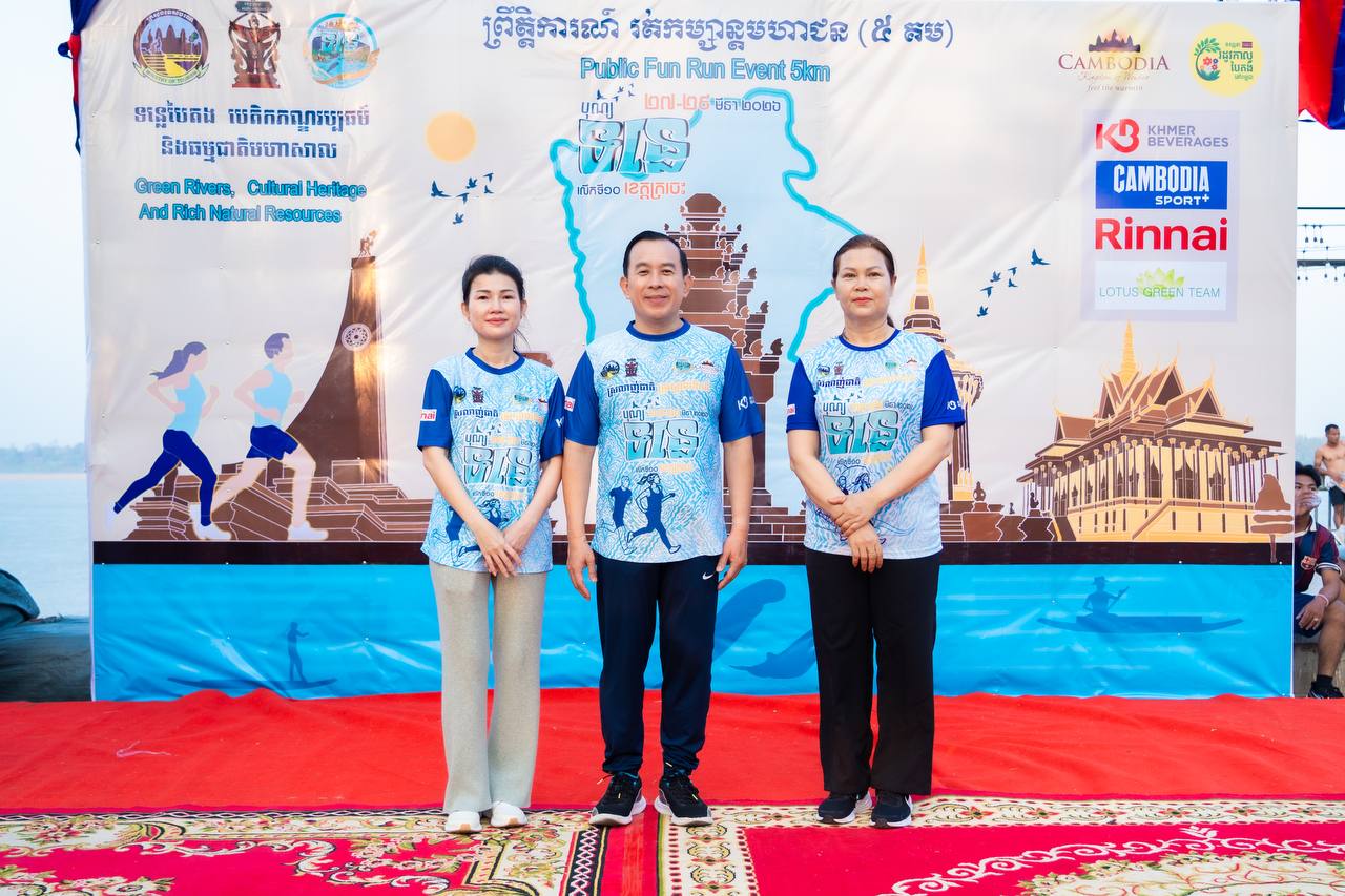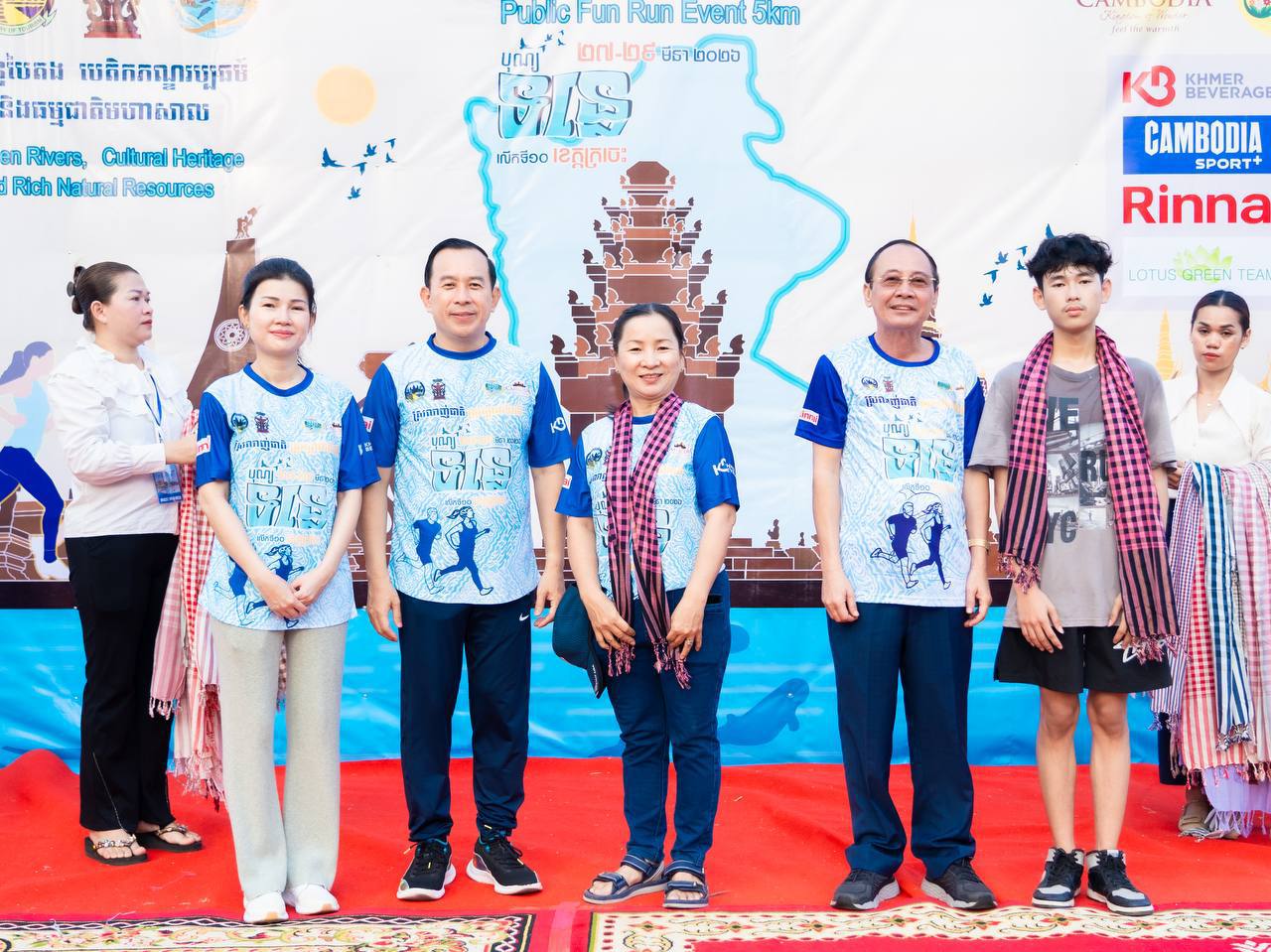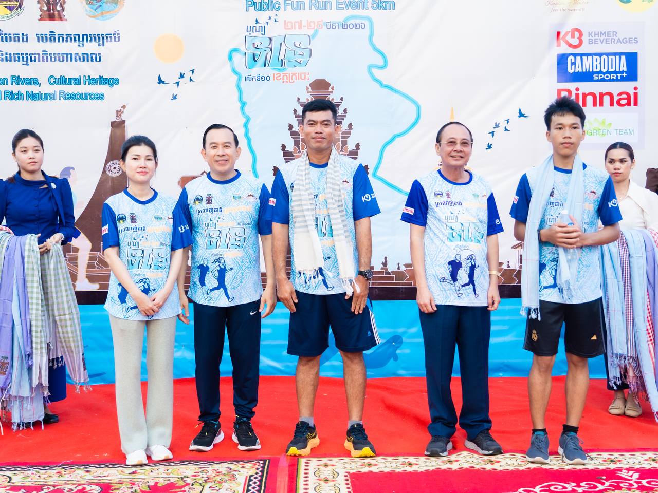 ឯកឧត្តម ហួត ហាក់ រដ្ឋមន្ត្រីក្រសួងទេសចរណ៍ និងលោកជំទាវ រួមជាមួយឯកឧត្តម វ៉ា ថន អភិបាលនៃគណៈអភិបាលខេត្តក្រចេះ អញ្ជើញជាអធិបតីក្នុងពិធីរត់កម្សាន្តមហាជន ចម្ងាយ៥គ.ម ក្នុងគោលបំណងដើម្បីអបអរសាទរព្រឹត្តិការណ៍បុណ្យទន្លេ លើកទី១០ ក្រោមប្រធានបទ “ទន្លេបៃតង បេតិកភណ្ឌវប្បធម៌ និងធម្មជាតិមហាសាល” ប្រព្រឹត្តទៅចាប់ពីថ្ងៃទី២៧ ដល់២៩ ខែមីនា ឆ្នាំ២០២៦ នៅខេត្តក្រចេះ, ការលើកកម្ពស់សុខភាពសាធារណៈ បង្កើនការចូលរួមរបស់យុវជន និងផ្សព្វផ្សាយសក្តានុពលទេសចរណ៍តាមដងទន្លេ។
