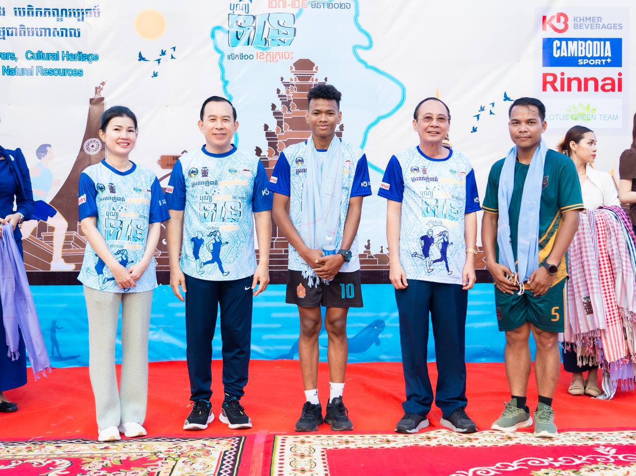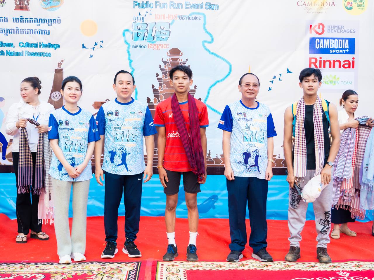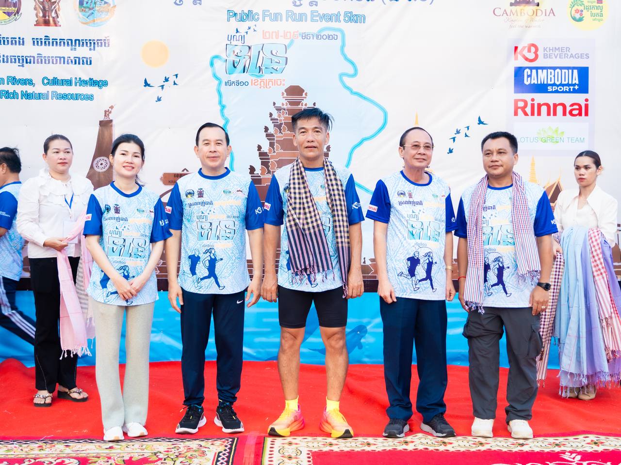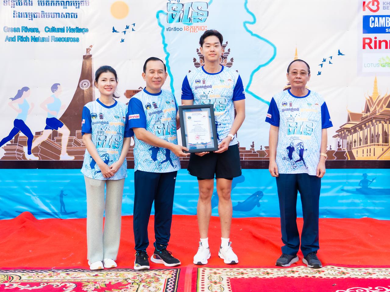 ឯកឧត្តម ហួត ហាក់ រដ្ឋមន្ត្រីក្រសួងទេសចរណ៍ និងលោកជំទាវ រួមជាមួយឯកឧត្តម វ៉ា ថន អភិបាលនៃគណៈអភិបាលខេត្តក្រចេះ អញ្ជើញជាអធិបតីក្នុងពិធីរត់កម្សាន្តមហាជន ចម្ងាយ៥គ.ម ក្នុងគោលបំណងដើម្បីអបអរសាទរព្រឹត្តិការណ៍បុណ្យទន្លេ លើកទី១០ ក្រោមប្រធានបទ “ទន្លេបៃតង បេតិកភណ្ឌវប្បធម៌ និងធម្មជាតិមហាសាល” ប្រព្រឹត្តទៅចាប់ពីថ្ងៃទី២៧ ដល់២៩ ខែមីនា ឆ្នាំ២០២៦ នៅខេត្តក្រចេះ, ការលើកកម្ពស់សុខភាពសាធារណៈ បង្កើនការចូលរួមរបស់យុវជន និងផ្សព្វផ្សាយសក្តានុពលទេសចរណ៍តាមដងទន្លេ។