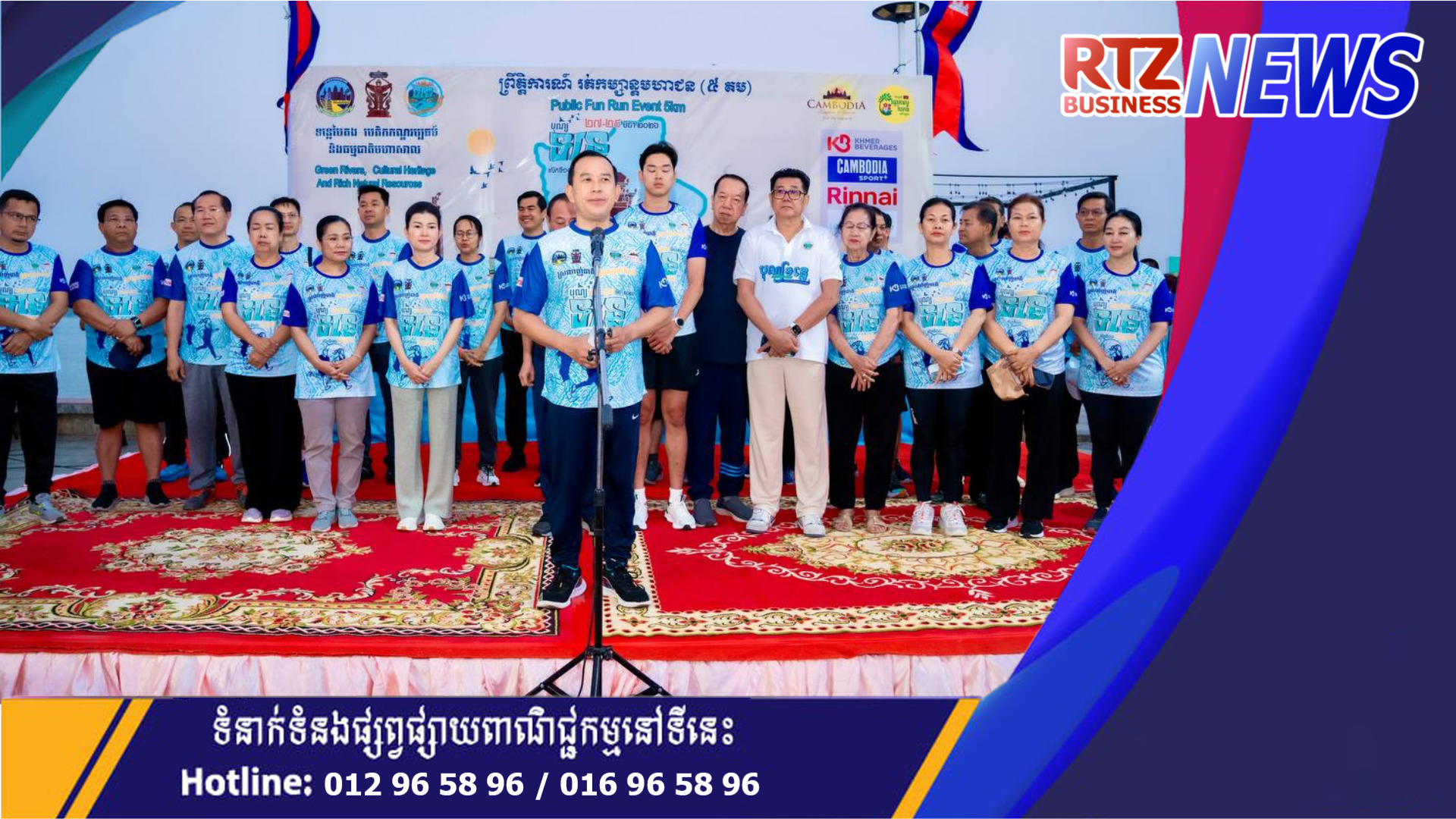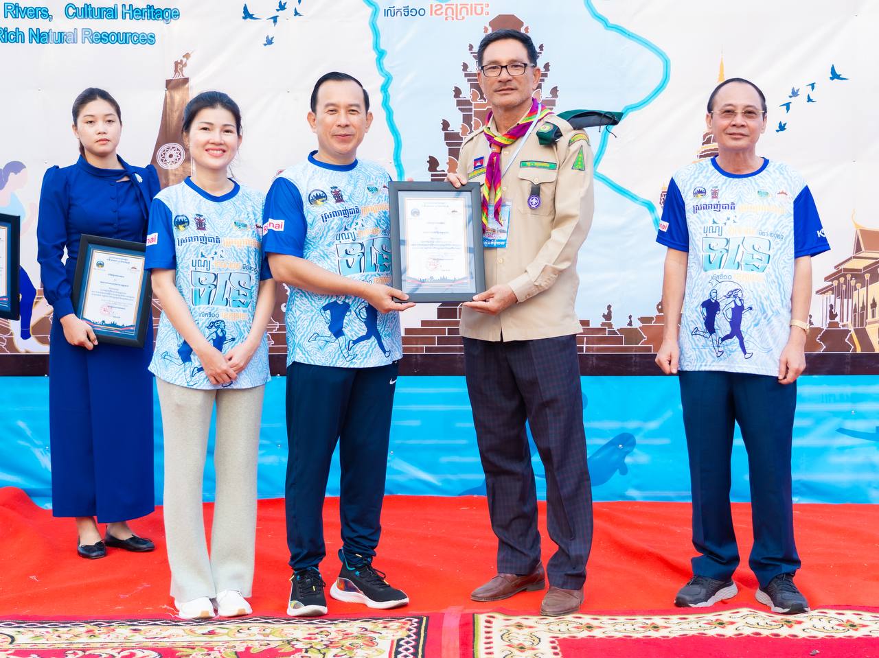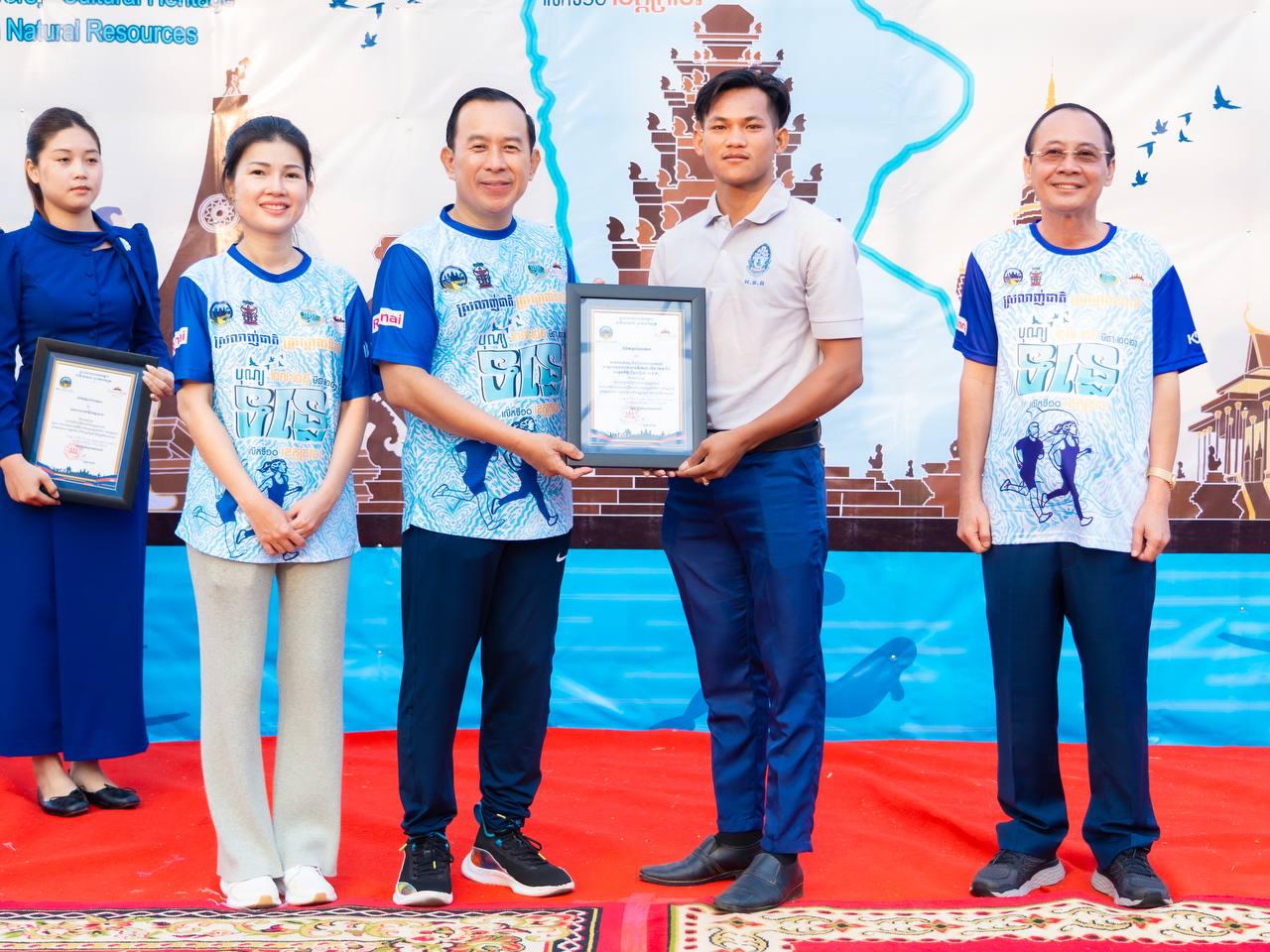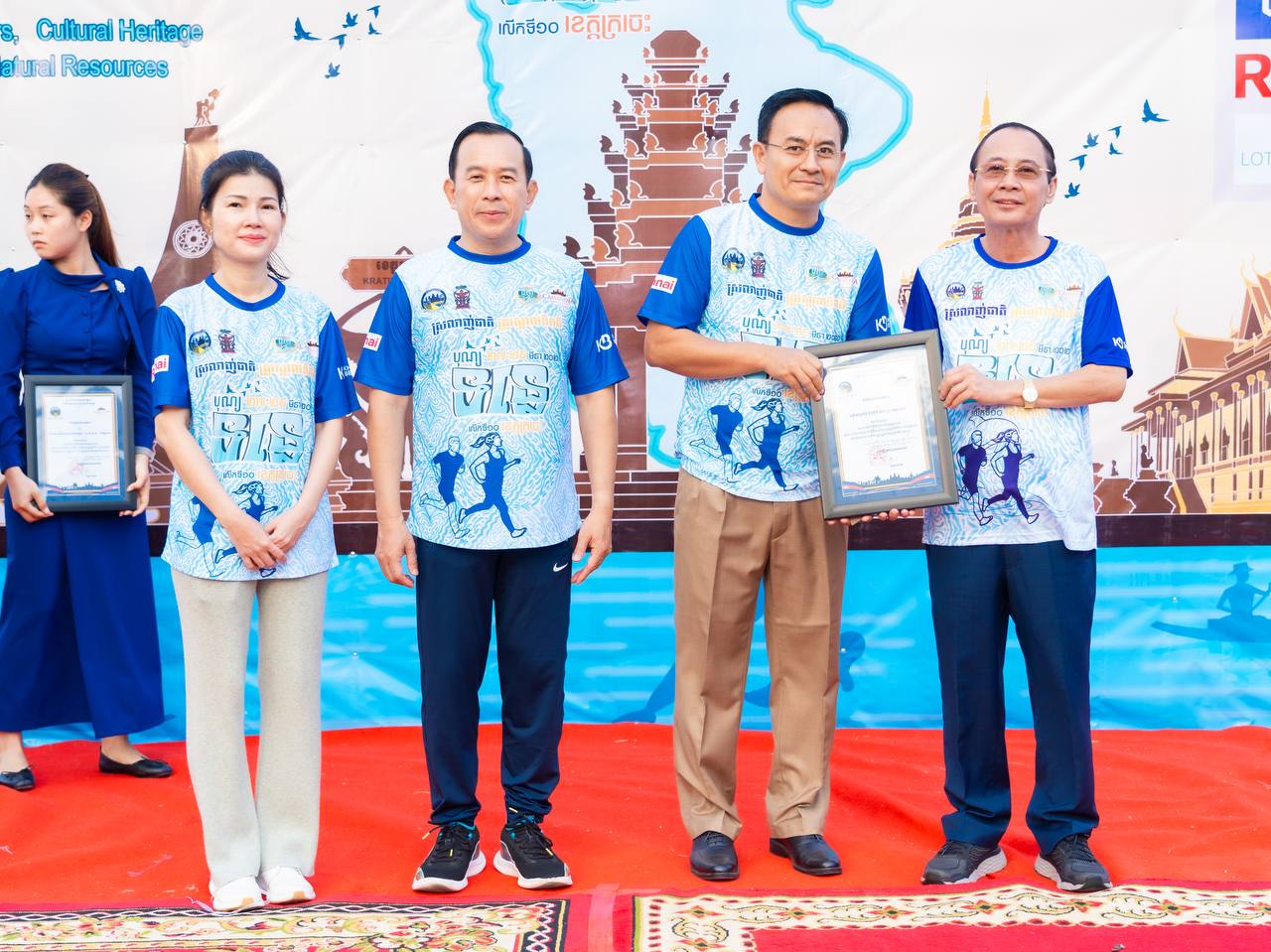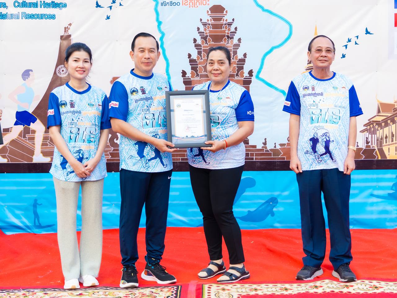 ឯកឧត្តម ហួត ហាក់ រដ្ឋមន្ត្រីក្រសួងទេសចរណ៍ និងលោកជំទាវ រួមជាមួយឯកឧត្តម វ៉ា ថន អភិបាលនៃគណៈអភិបាលខេត្តក្រចេះ អញ្ជើញជាអធិបតីក្នុងពិធីរត់កម្សាន្តមហាជន ចម្ងាយ៥គ.ម ក្នុងគោលបំណងដើម្បីអបអរសាទរព្រឹត្តិការណ៍បុណ្យទន្លេ លើកទី១០ ក្រោមប្រធានបទ “ទន្លេបៃតង បេតិកភណ្ឌវប្បធម៌ និងធម្មជាតិមហាសាល” ប្រព្រឹត្តទៅចាប់ពីថ្ងៃទី២៧ ដល់២៩ ខែមីនា ឆ្នាំ២០២៦ នៅខេត្តក្រចេះ, ការលើកកម្ពស់សុខភាពសាធារណៈ បង្កើនការចូលរួមរបស់យុវជន និងផ្សព្វផ្សាយសក្តានុពលទេសចរណ៍តាមដងទន្លេ។