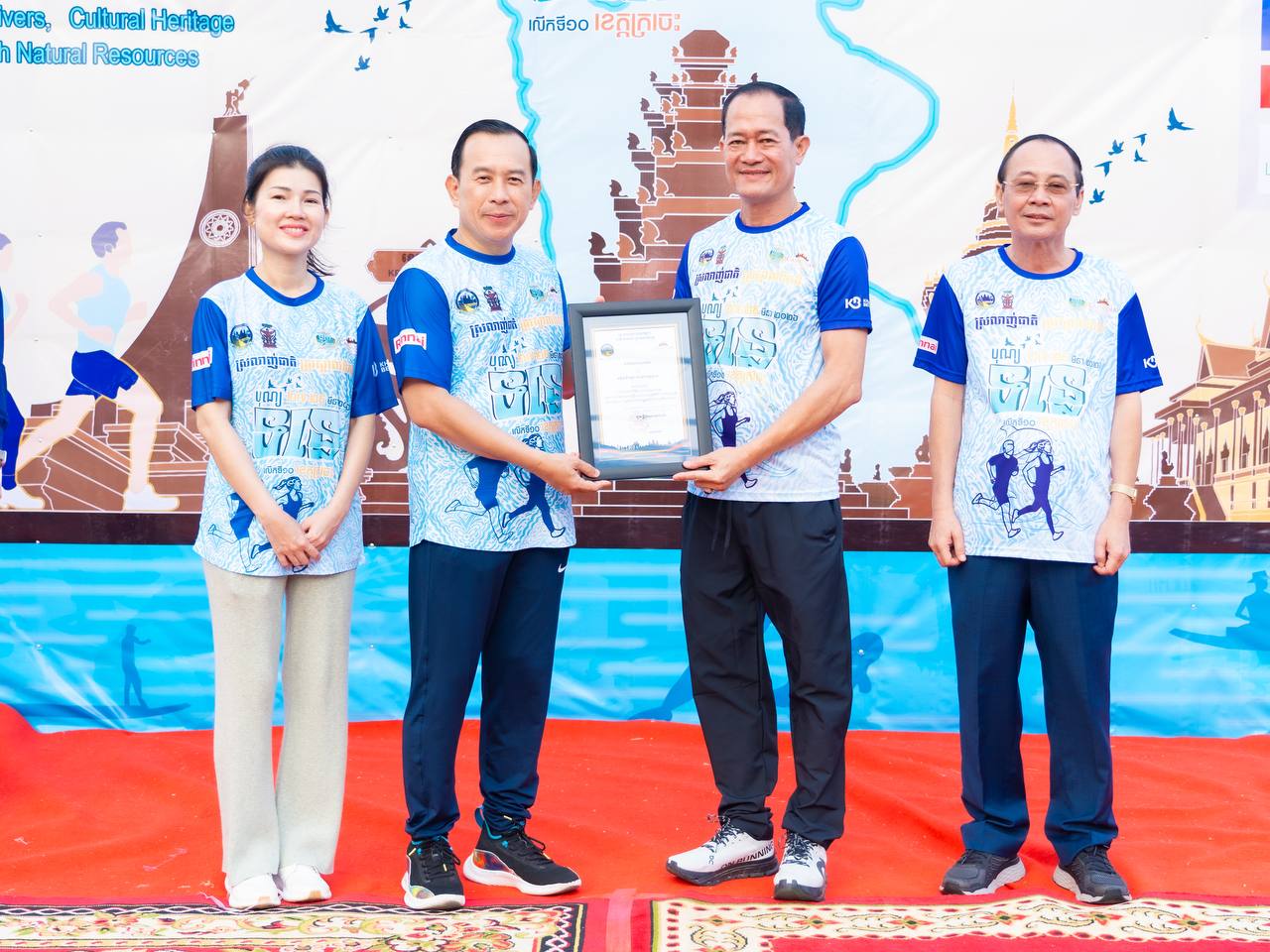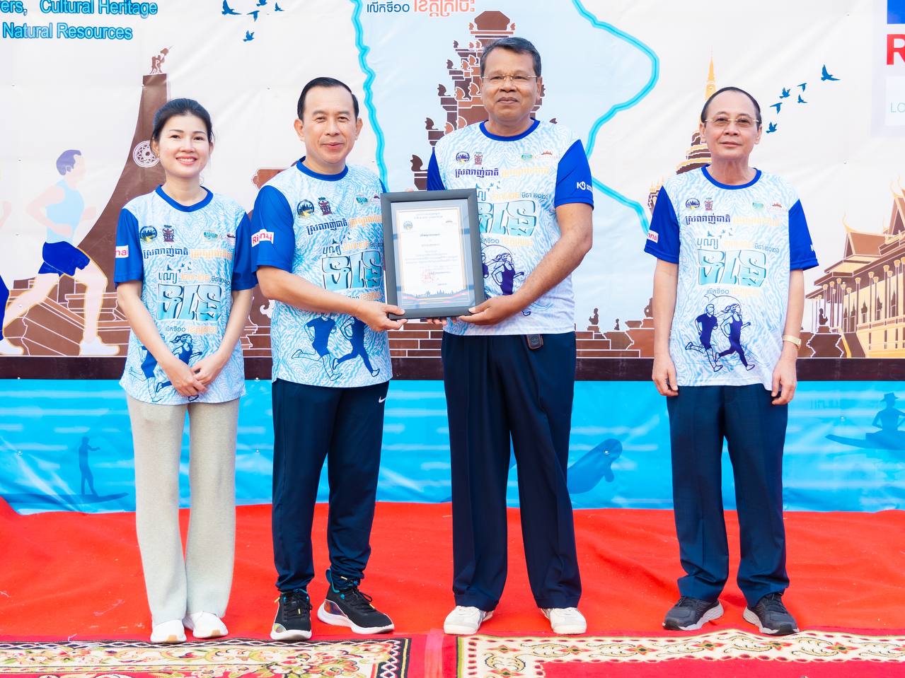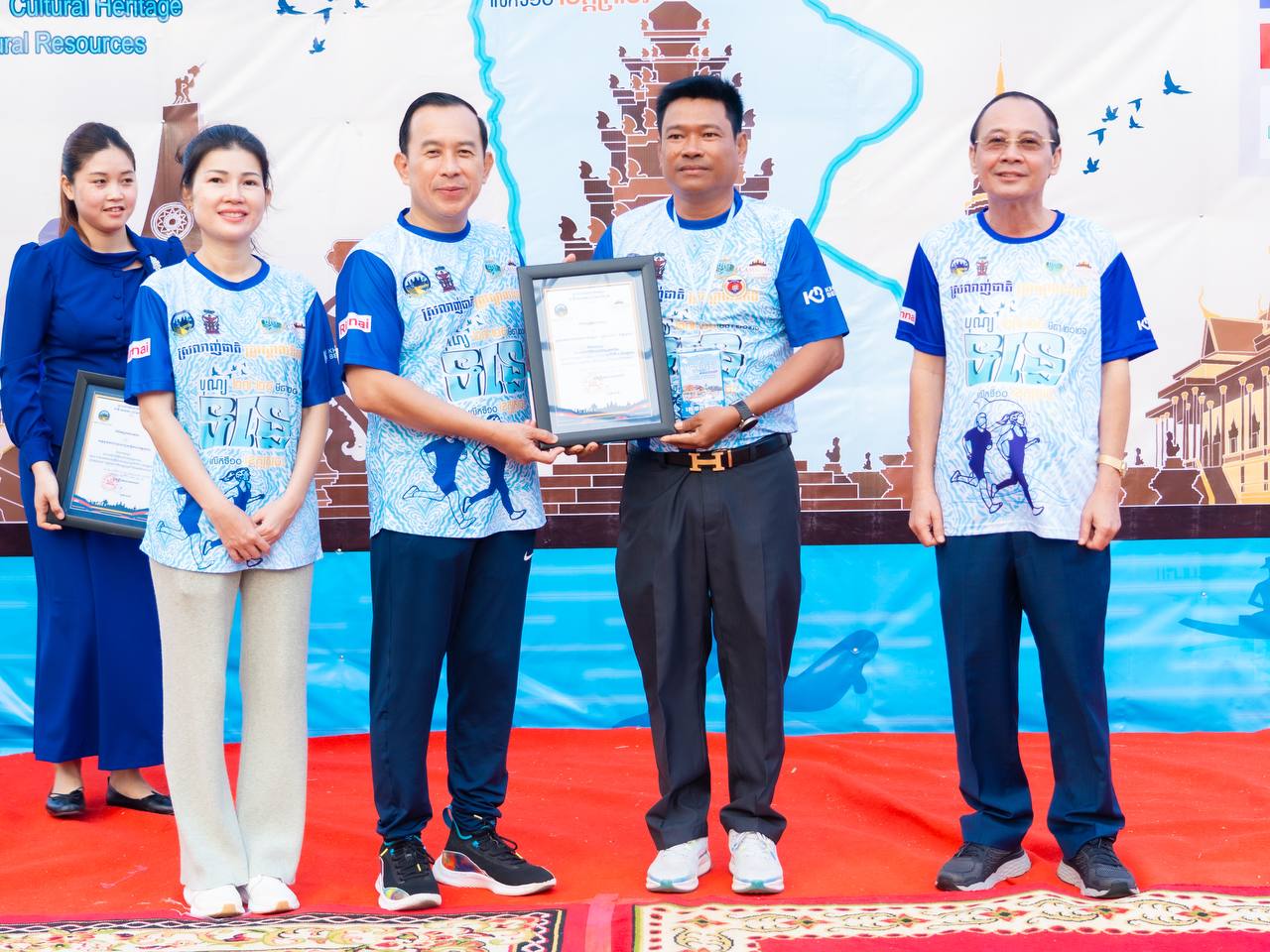 H.E. Huot Hak, Minister of Tourism, accompanied by his spouse, together with H.E. Va Thorn, Governor of Kratie Province, presided over a 5-kilometers fun run organized to celebrate the 10th River Festival under the theme “Green Rivers, Cultural and Natural Heritage.” The event is taking place from March 27 to 29, 2026, in Kratie Province. It aims to promote public health, encourage youth participation, and showcase the tourism potential along the river.