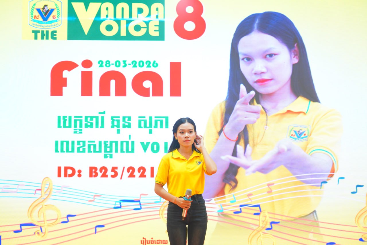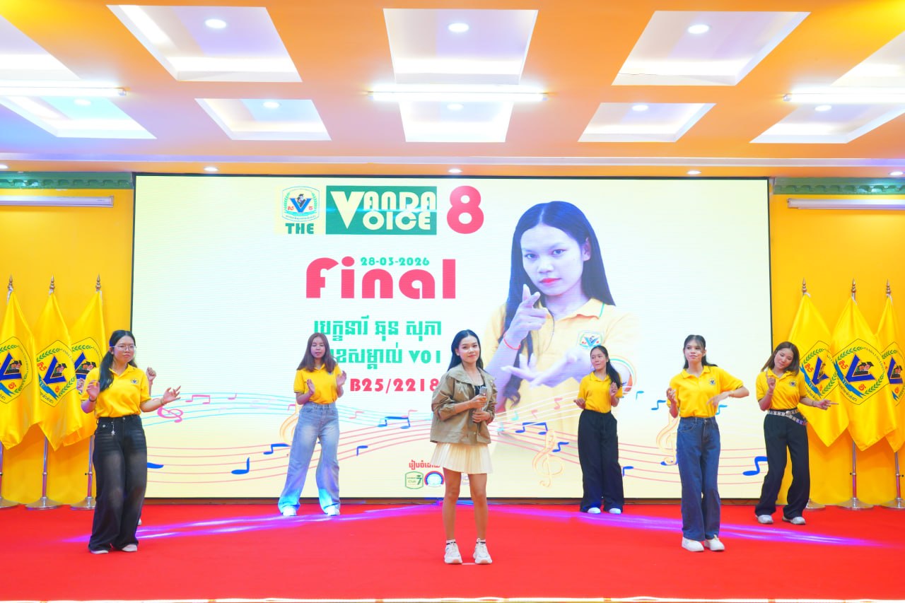សាកលវិទ្យាល័យ សូមចូលរួមអបអរសាទរចំពោះជ័យលាភីដែលបាន ទទួលជោគជ័យក្នុងកម្មវិធីប្រឡងចម្រៀង The Vanda’s Voice រដូវកាលទី៨ ប្រចាំឆ្នាំ ២០២៦ របស់សាកលវិទ្យាល័យវ៉ាន់ដា។