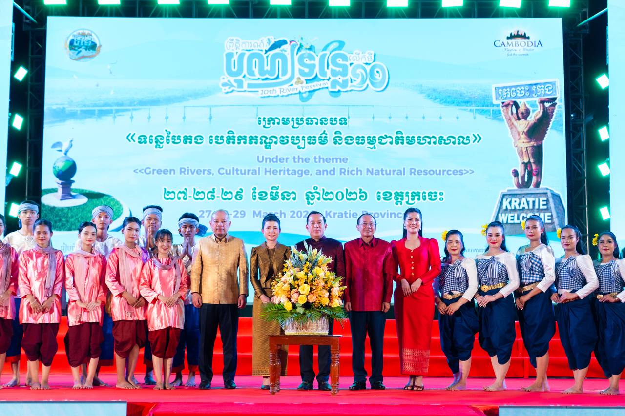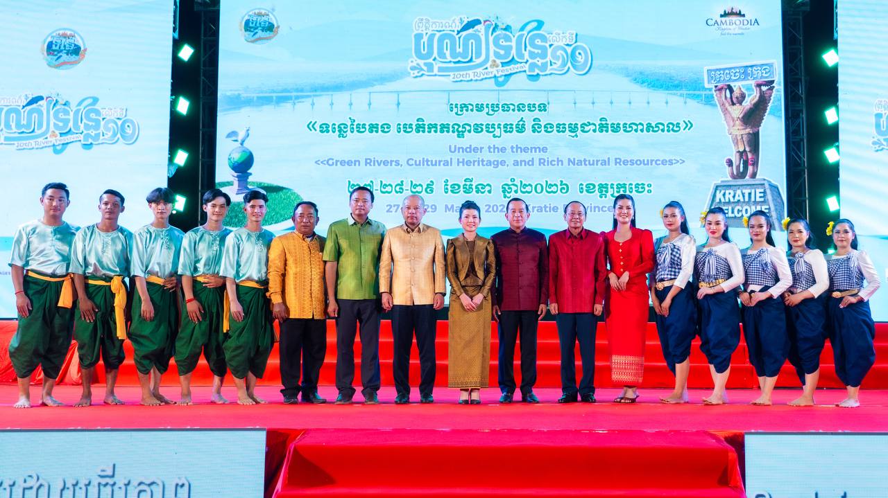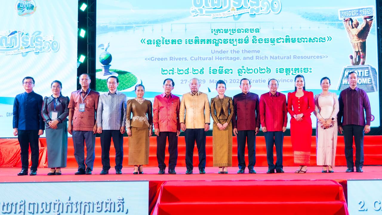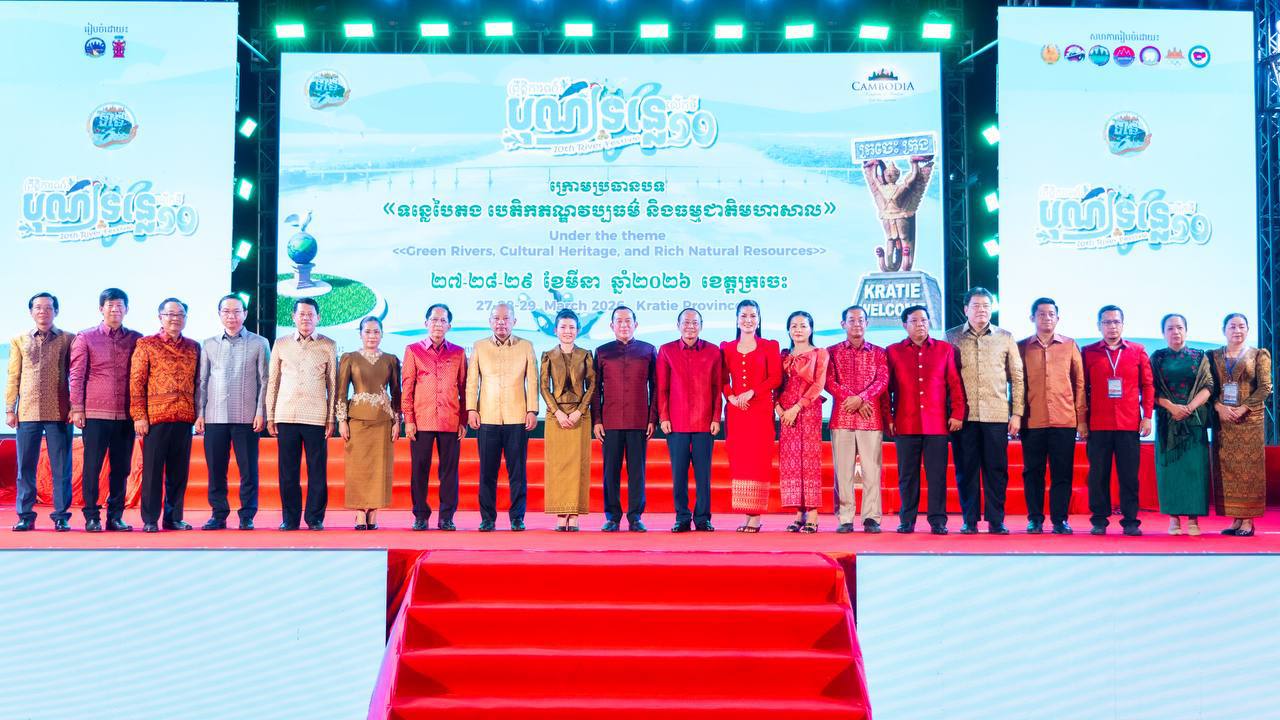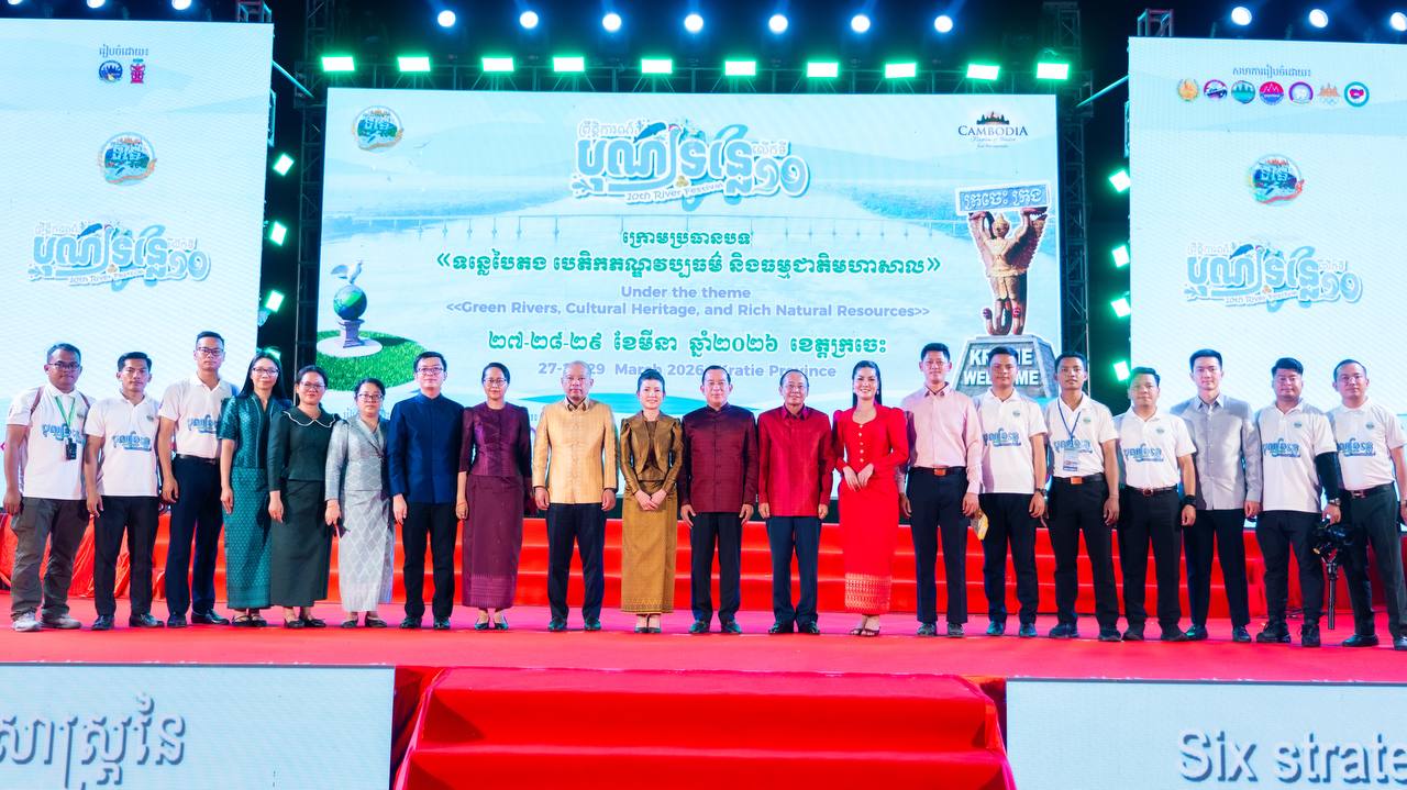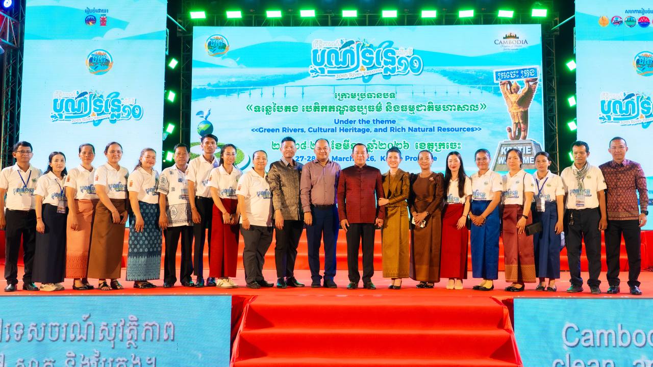 ដោយទទួលបានគោលការណ៍អនុញ្ញាតដ៏ខ្ពង់ខ្ពស់ពីរាជរដ្ឋាភិបាលកម្ពុជា ក្រសួងទេសចរណ៍ សហការជាមួយគណៈកម្មការអន្តរក្រសួង និងរដ្ឋបាលខេត្តក្រចេះ បានរៀបចំពិធីបិទព្រឹត្តិការណ៍បុណ្យទន្លេលើកទី១០ ឆ្នាំ២០២៦ ក្រោមអធិបតីភាពរបស់ ឯកឧត្តម ហួត ហាក់ រដ្ឋមន្ត្រីក្រសួងទេសចរណ៍ និងលោកជំទាវ ដោយមានការអញ្ជើញចូលរួមពីឯកឧត្តម វ៉ា ថន អភិបាលនៃគណៈអភិបាលខេត្តក្រចេះ និងលោកជំទាវ, ឯកឧត្តម ប៉េង ពោធិ៍សា អភិបាលនៃគណៈអភិបាលខេត្តស្វាយរៀង ព្រមទាំងឯកឧត្តម-លោកជំទាវ ជាថ្នាក់ដឹកនាំតំណាងអន្តរក្រសួង វិស័យឯកជន បណ្ដាញសារព័ត៌មាន អ្នកផលិតមាតិកា ភ្ញៀវកិត្តិយស និងប្រជាពលរដ្ឋចូលរួមសរុបជាង ៣,០០០ នាក់។