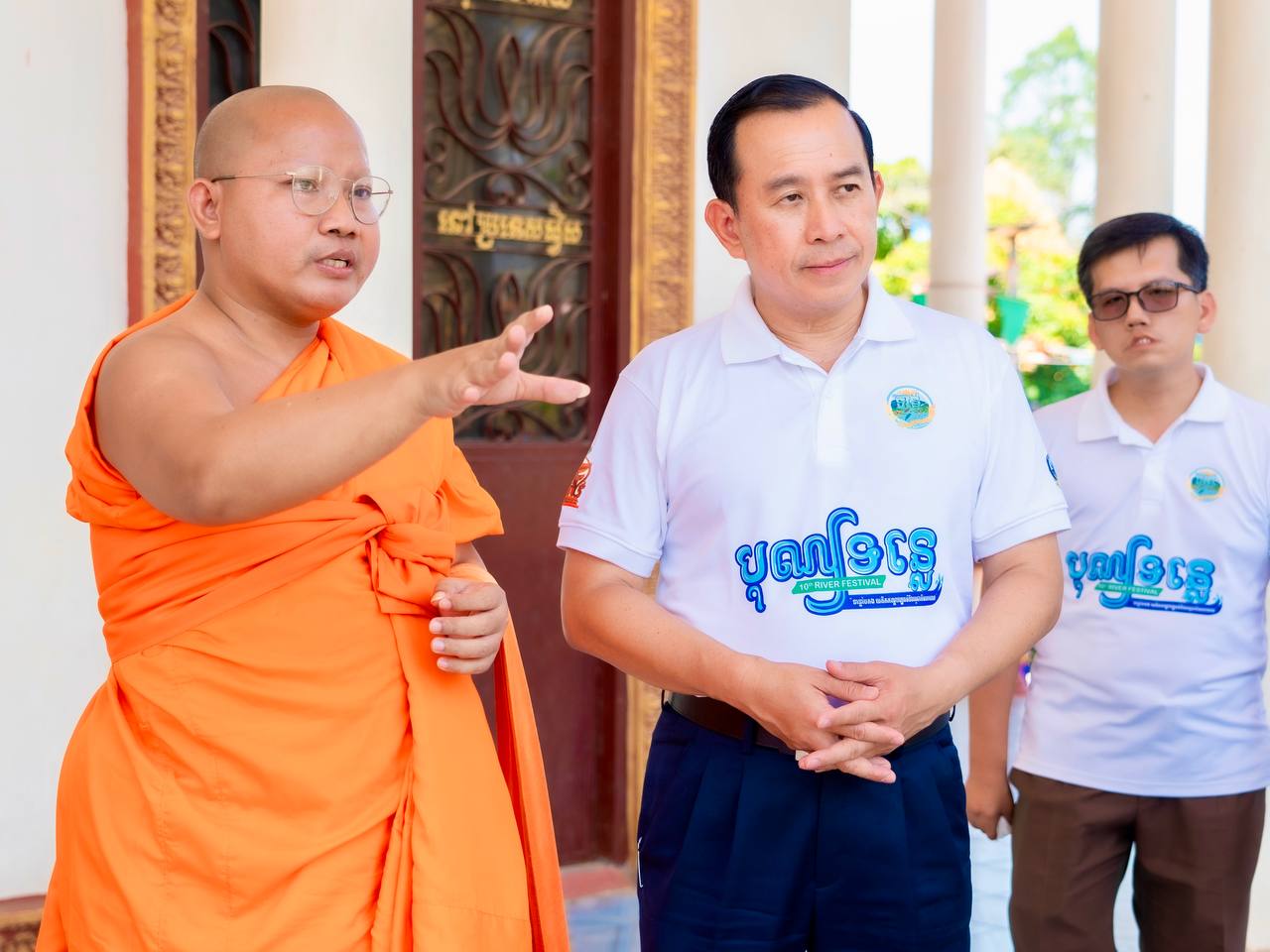 His Excellency Huot Hak, Minister of Tourism, and Lok Chumteav led a joint working group organizing the 10th River Festival to pay respects and offer donations to the Venerable Abbot and monks residing at this historic and well-known pagoda in Kratie Province. The delegation also inspected infrastructure conditions, safety measures, environmental aspects, and hospitality arrangements within the pagoda compound to ensure convenience, good order, and a welcoming atmosphere for both national and international tourists visiting to learn about the pagoda’s history, which is closely linked to Cambodia’s heritage, and to pay their respects.