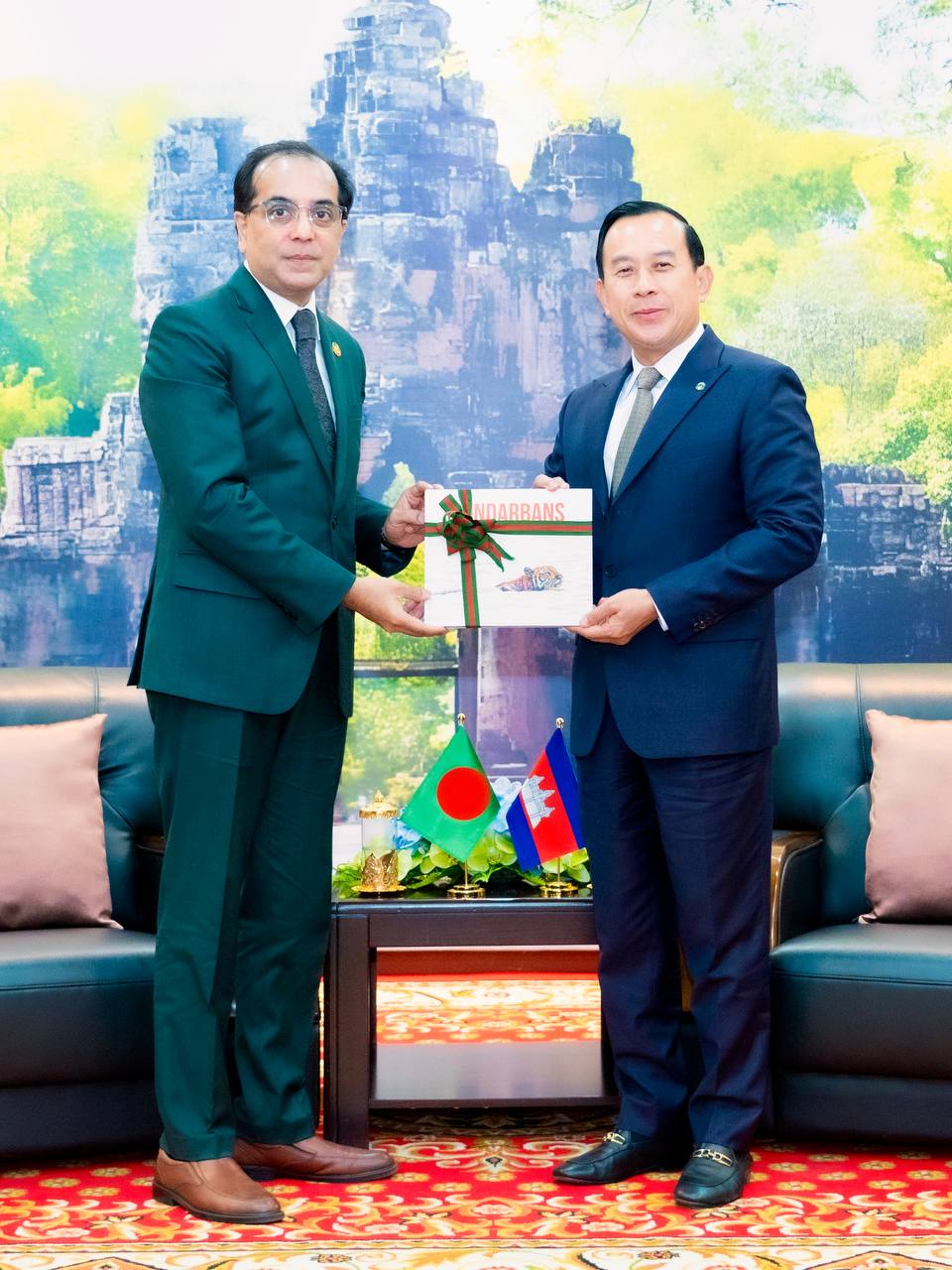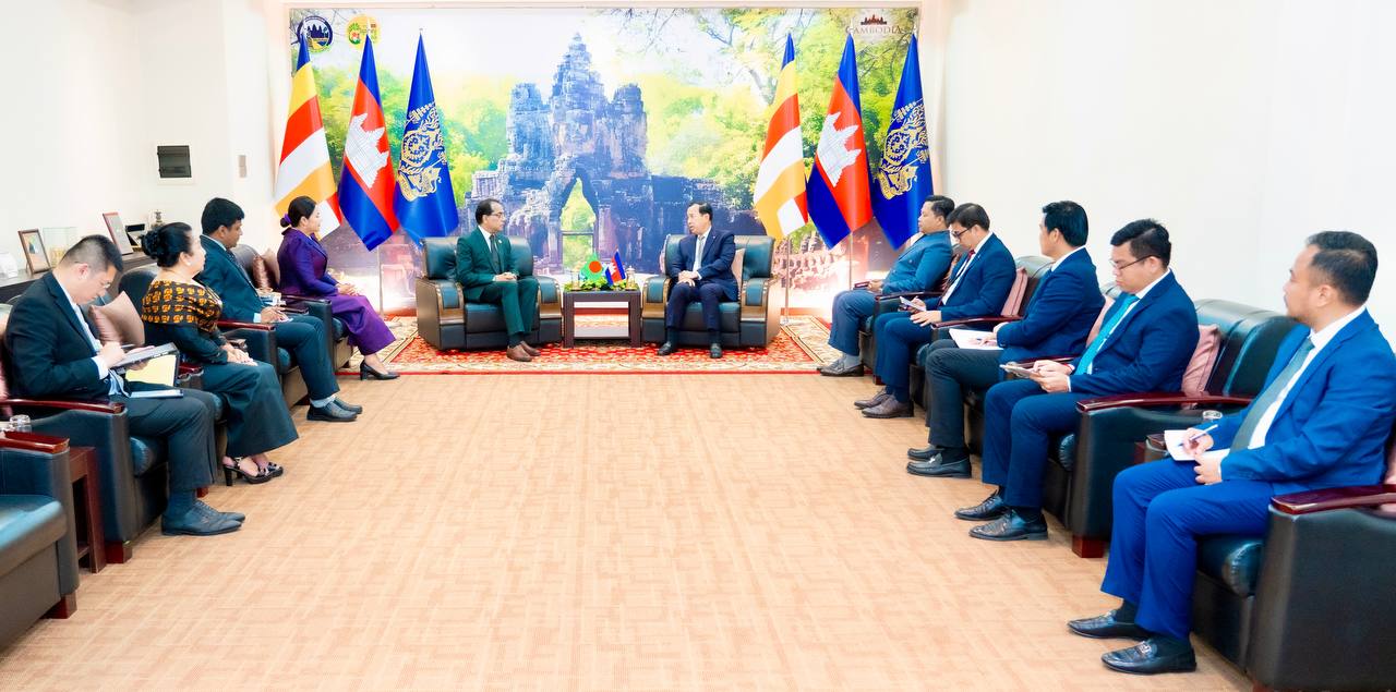 H.E. Hout Hak, Minister of Tourism, received a courtesy call from H.E. Faiyaz Murshid Kazi, Chargé d’Affaires of the Embassy of the People’s Republic of Bangladesh to Cambodia, along with his delegation, focused on strengthening and expanding tourism cooperation between the two countries to a deeper level at the ministry of tourism headquarters.