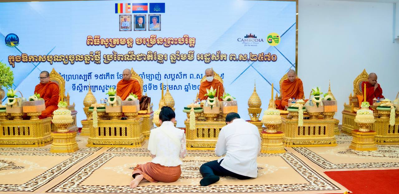 ពិធីចម្រើនព្រះបរិត្តអបអរសាទរពិធីបុណ្យចូលឆ្នាំថ្មីប្រពៃណីជាតិខ្មែរ បណ្ដេញឧបទ្រពពីឆ្នាំចាស់ ប្រោះព្រំថ្វាយព្រះពរជ័យលើករាសីនិងទទួលអំណរឆ្នាំថ្មី ឆ្នាំមមី អដ្ឋស័ក ព.ស.២៥៧០ ដែលនឹងឈានចូលមកដល់ នៅថ្ងៃទី១៤ ដល់ថ្ងៃទី១៦ ខែមេសា ខាងមុខនេះក្រោមអធិបតីភាព ឯកឧត្តមរដ្ឋមន្ត្រី ហួត ហាក់ និងលោកជំទាវ សុង ធីតា