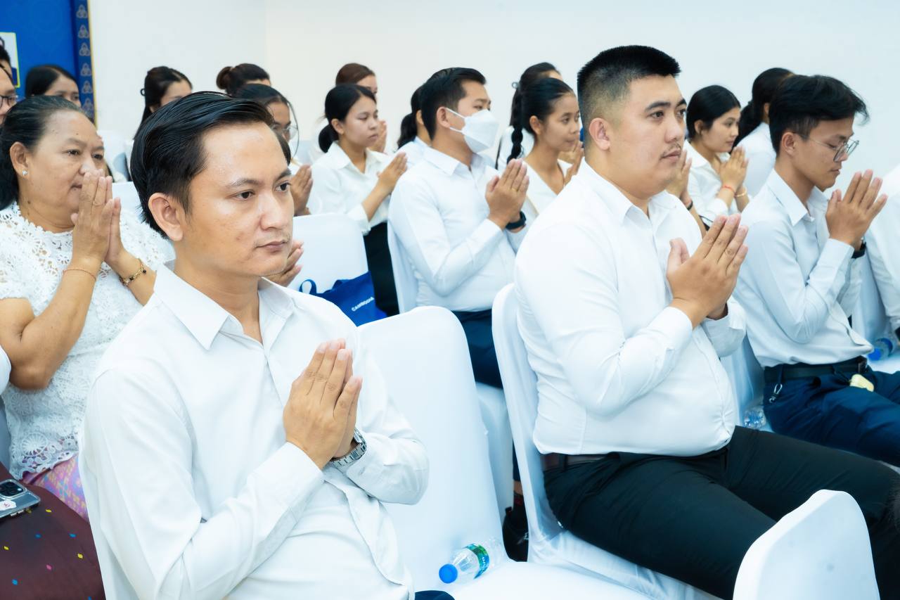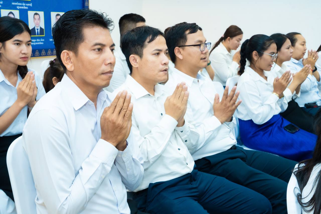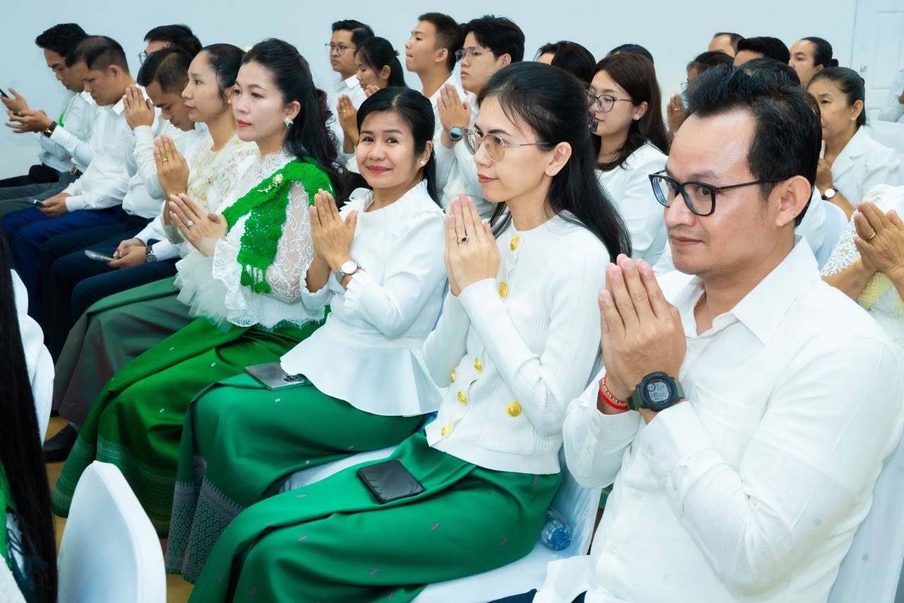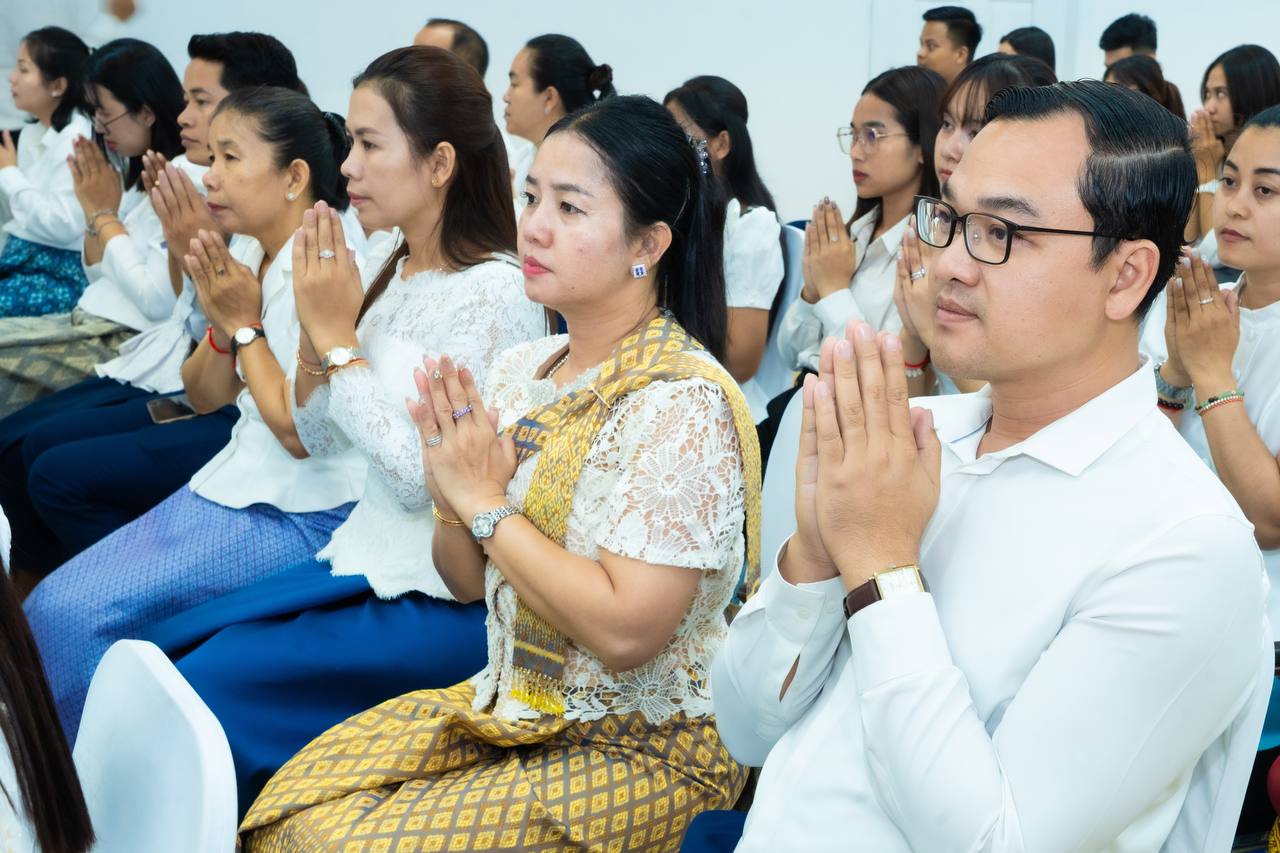 His Excellency HUOT Hak and Her Excellency SONG Thida led the Buddhist chanting ceremony in accordance with Khmer traditions and Buddhist practices. Five monks were invited to perform chanting and administer the Five Precepts, with the purpose of cleansing misfortunes from the old year and welcoming blessings for the new year.
