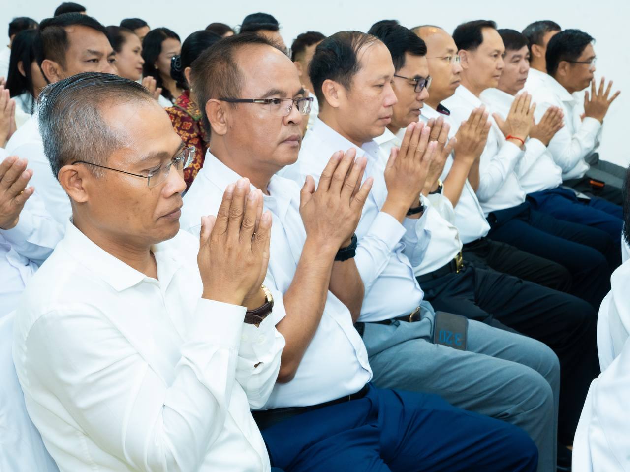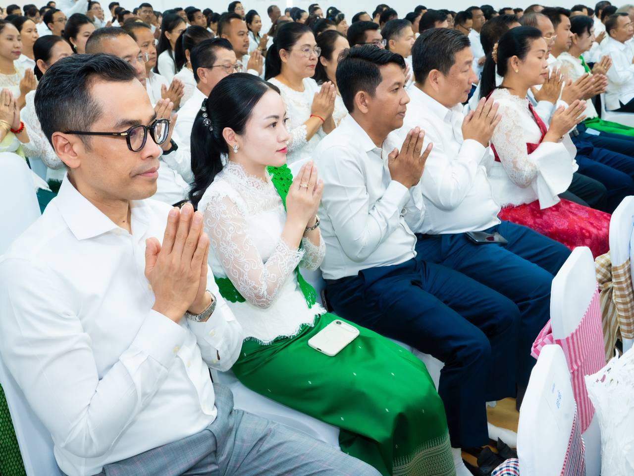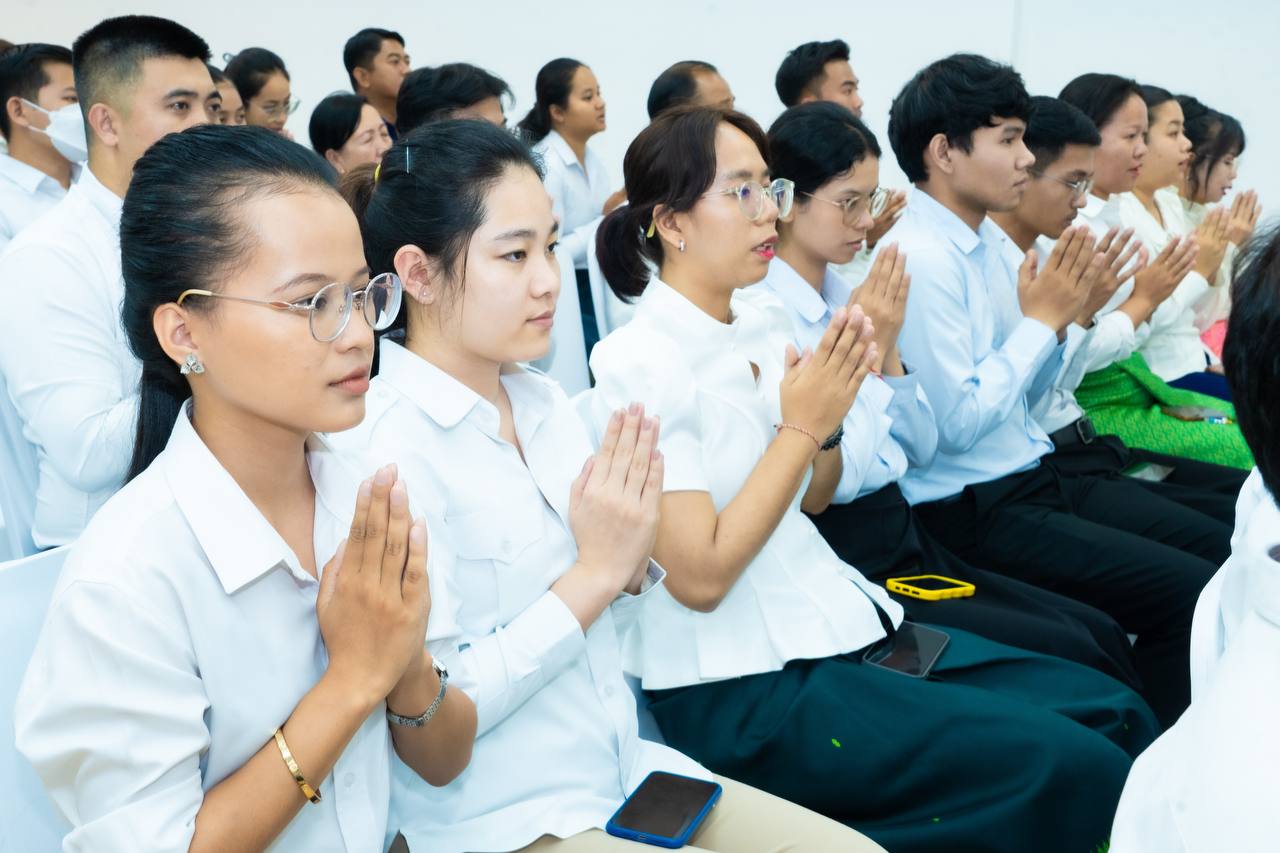 His Excellency HUOT Hak and Her Excellency SONG Thida led the Buddhist chanting ceremony in accordance with Khmer traditions and Buddhist practices. Five monks were invited to perform chanting and administer the Five Precepts, with the purpose of cleansing misfortunes from the old year and welcoming blessings for the new year.