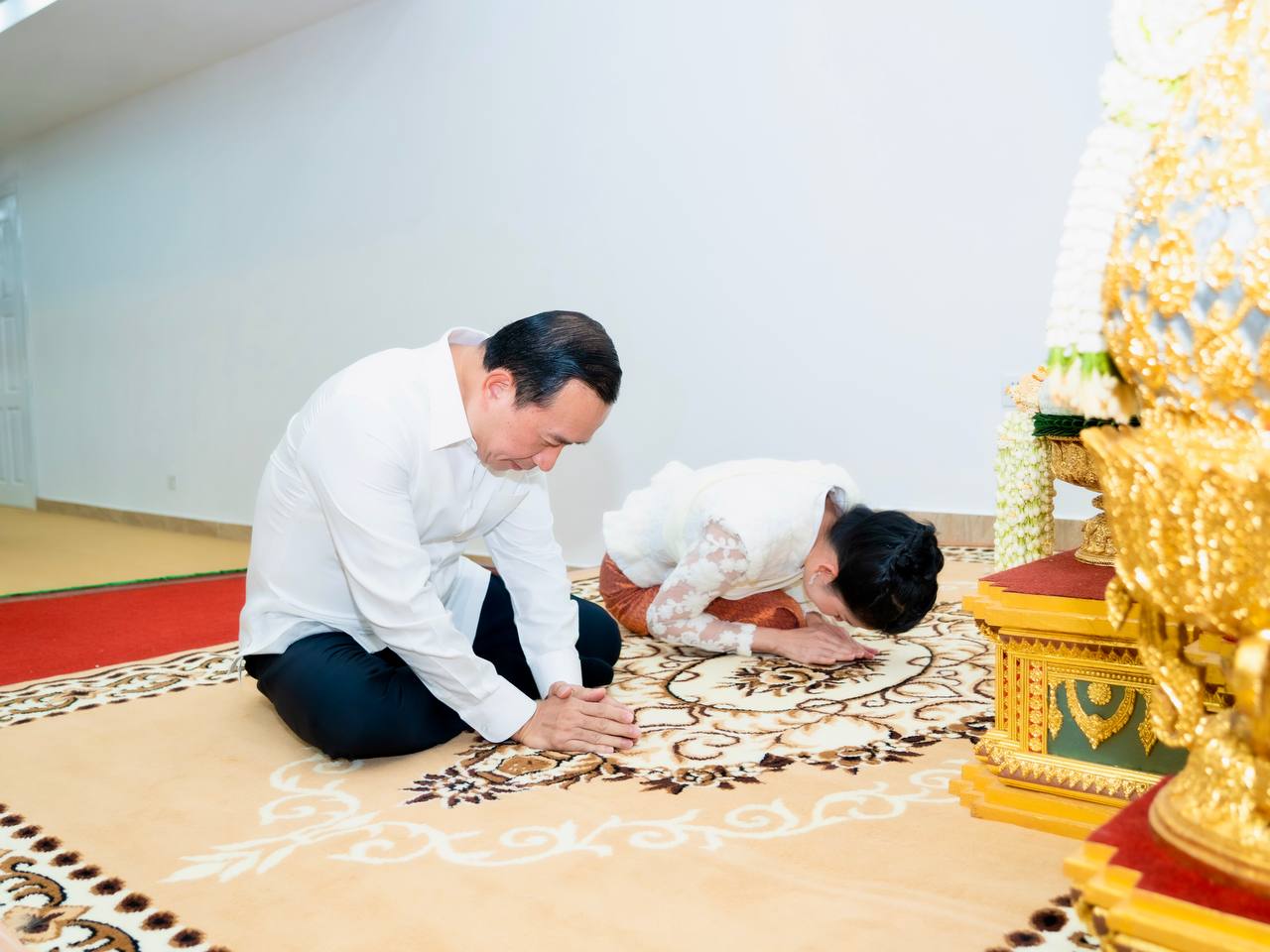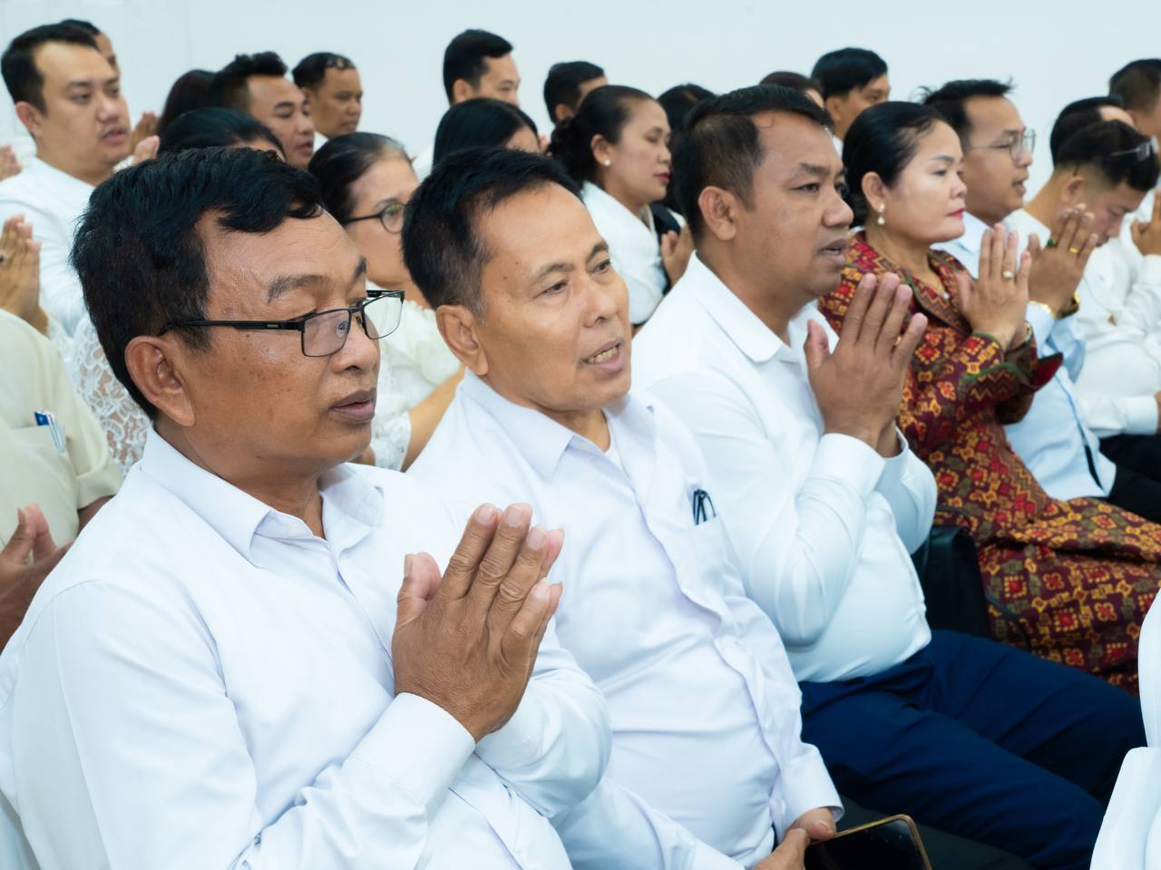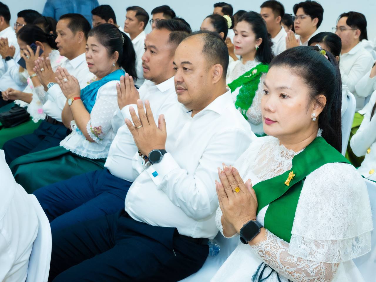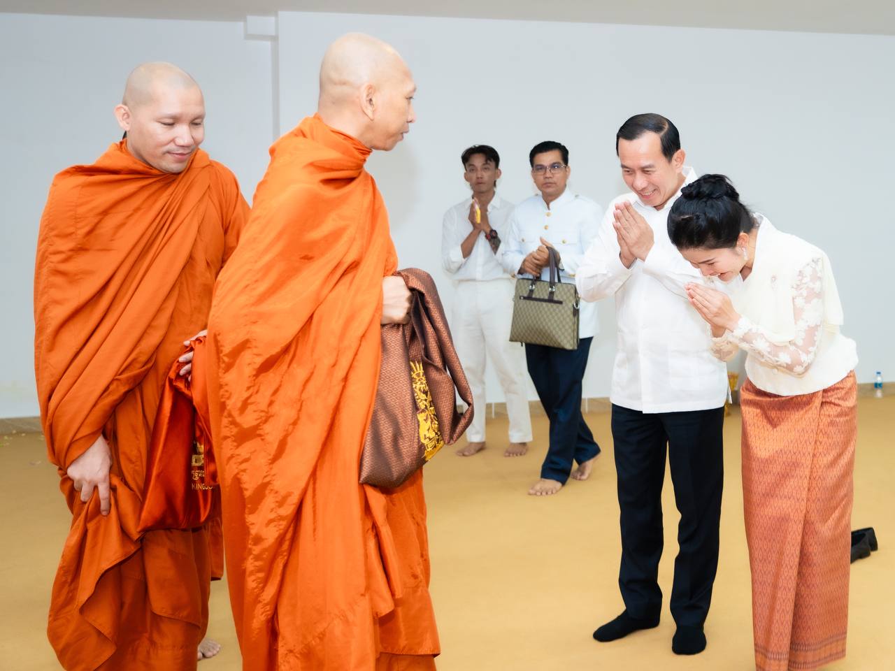 His Excellency HUOT Hak and Her Excellency SONG Thida led the Buddhist chanting ceremony in accordance with Khmer traditions and Buddhist practices. Five monks were invited to perform chanting and administer the Five Precepts, with the purpose of cleansing misfortunes from the old year and welcoming blessings for the new year.