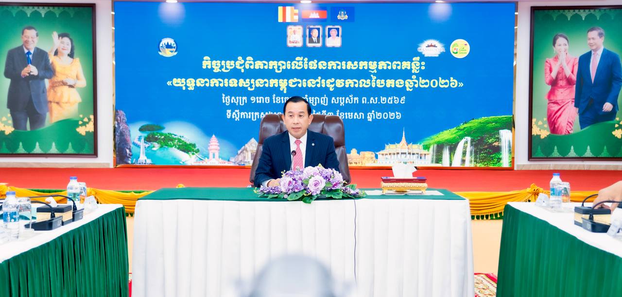 ឯកឧត្តម ហួត ហាក់ រដ្ឋមន្ត្រីក្រសួងទេសចរណ៍ អញ្ជើញដឹកនាំកិច្ច ប្រជុំផែនការសកម្មភាពគន្លឹះយុទ្ធនាការទស្សនាកម្ពុជានៅរដូវកាលបៃតង ឆ្នាំ២០២៦ ក្នុងគោលបំណងពិនិត្យអំពីលទ្ធផលនៃការអនុវត្តយុទ្ធនាការទស្សនាកម្ពុជានៅរដូវកាលបៃតងឆ្នាំ២០២៥ ព្រមទាំងពិនិត្យ និងផ្តល់យោបល់លើផែនការសកម្មភាពគន្លឹះយុទ្ធនាការទស្សនាកម្ពុជានៅរដូវកាលបៃតង ឆ្នាំ២០២៦។