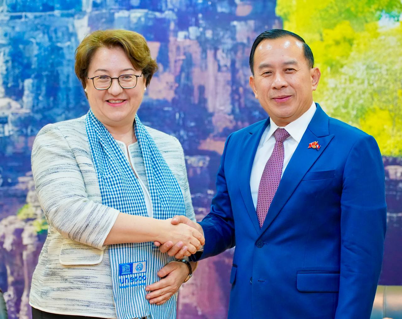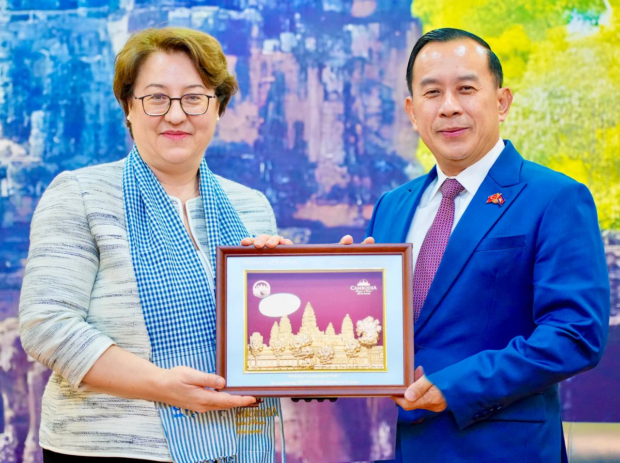 ឆ្លៀតក្នុងឱកាសនៃជំនួបនេះ លោកជំទាវឯកអគ្គរដ្ឋទូត បានថ្លែងអំណរគុណយ៉ាងជ្រាលជ្រៅចំពោះកិច្ចសហការគាំទ្រដល់ស្ថានទូតពីសំណាក់រាជរដ្ឋាភិបាលកម្ពុជា និងក្រសួងទេសចរណ៍កន្លងមក ដែលបាននាំមកនូវសមិទ្ធផលសំខាន់ៗ និងគួរជាទីមោទនៈ អាចសម្រេចបានក្នុងអំឡុងអាណត្តិបេសកកម្មការទូតរបស់លោកជំទាវ។