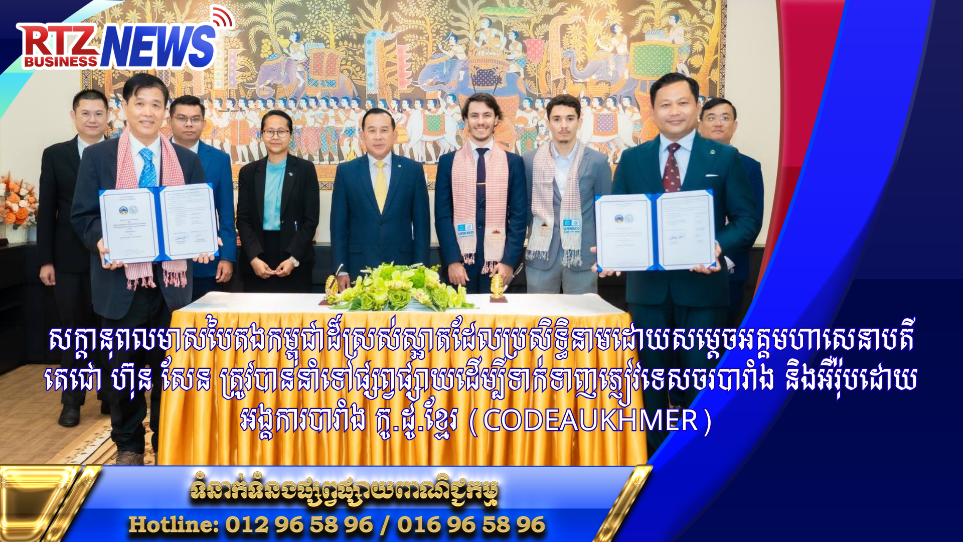 ឯកឧត្តម ហួត ហាក់ រដ្ឋមន្ត្រីក្រសួងទេសចរណ៍ បានអញ្ជើញជាគណៈអធិបតីក្នុងពិធីចុះអនុស្សរណៈនៃការយោគយល់គ្នារវាងក្រសួងទេសចរណ៍ និងអង្គការ កូ.ដូ.ខ្មែរ (CODEAUKHMER) លើការជំរុញវិស័យអេកូទេសចរណ៍ ដោយមានការចូលរូមពីលោក Pierric REYNAUD តំណាងស្ថានទូតបារាំងប្រចាំកម្ពុជា ព្រមទាំងលោក-លោកស្រីតំណាងភាគីពាក់ព័ន្ធនឹងគម្រោងជំរុញអេកូទេសចរណ៍ នៅទីស្តីការក្រសួងទេសចរណ៍។