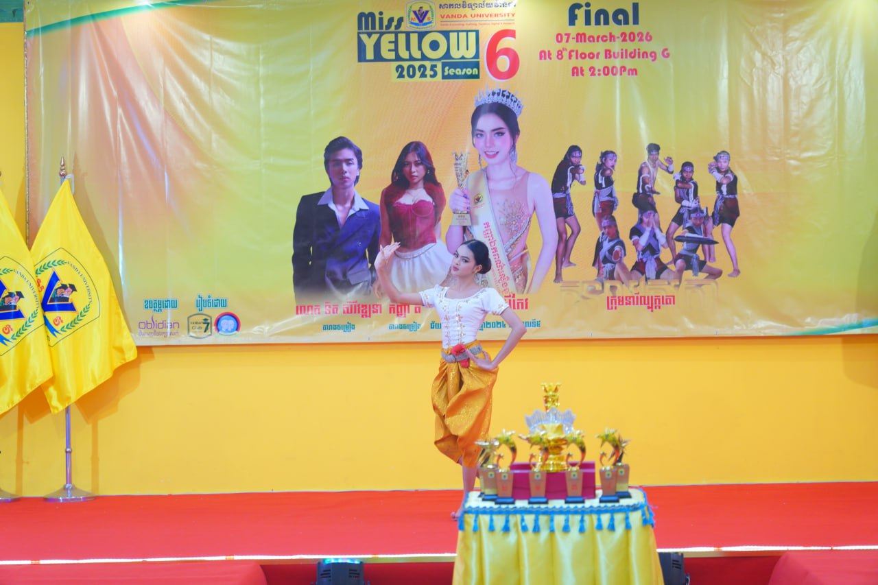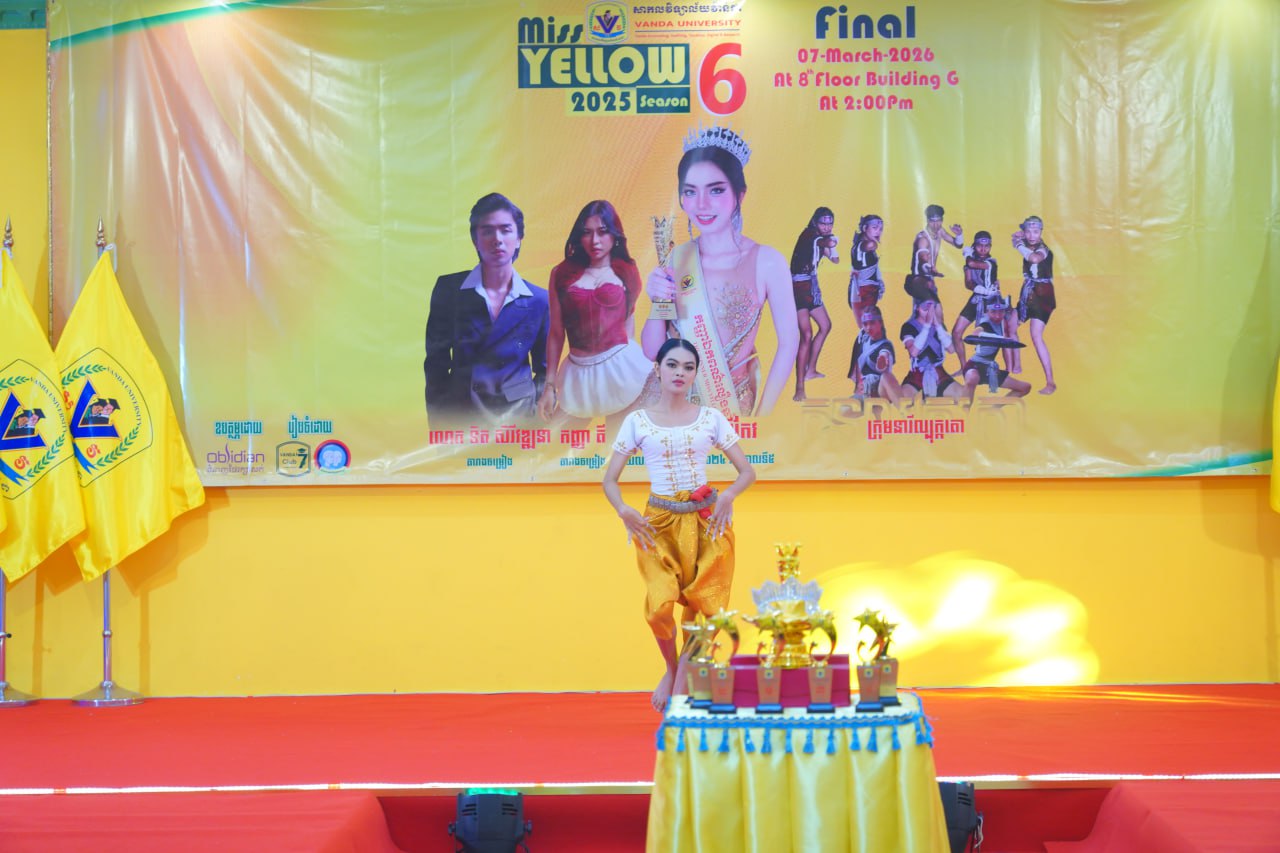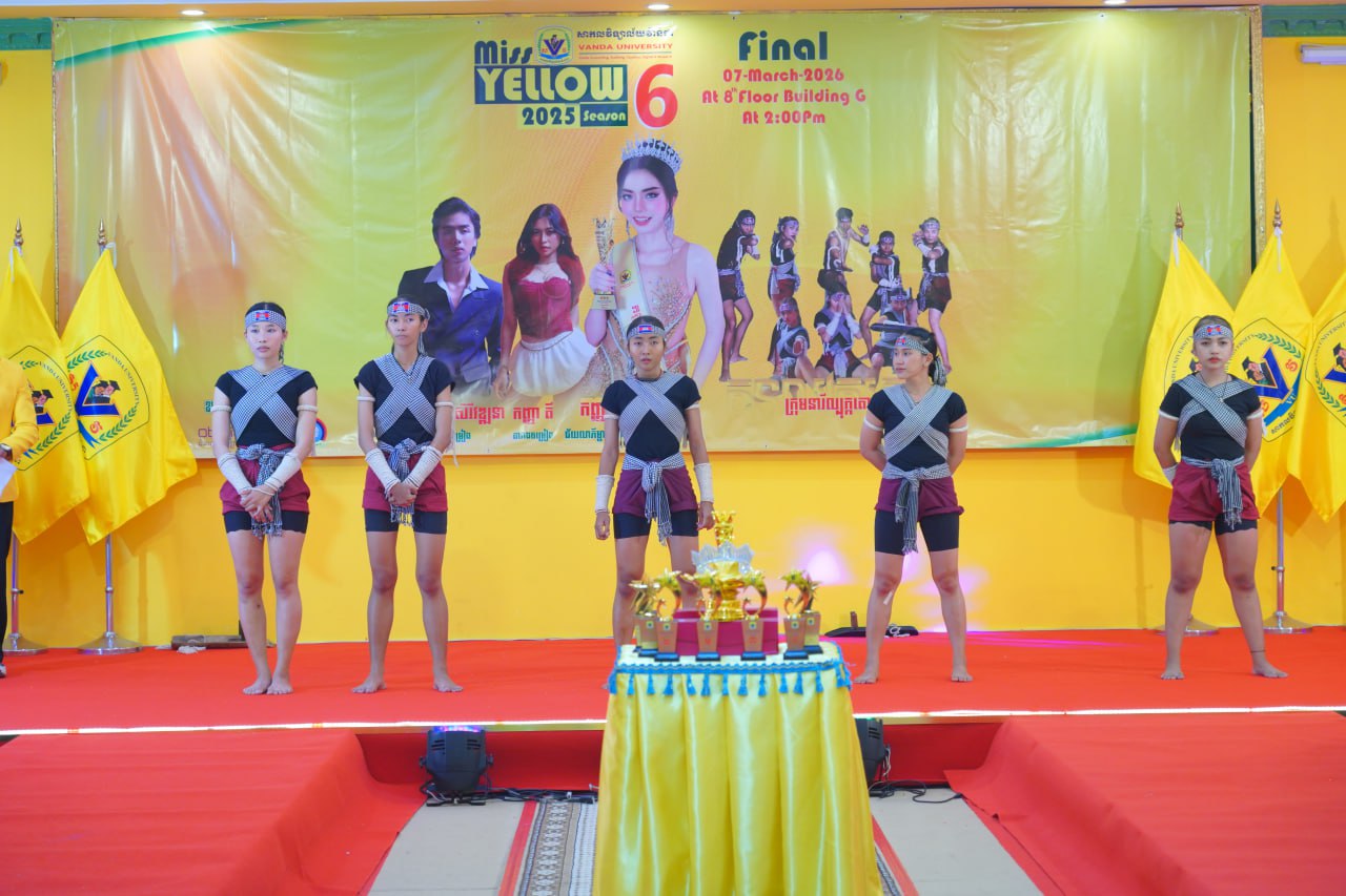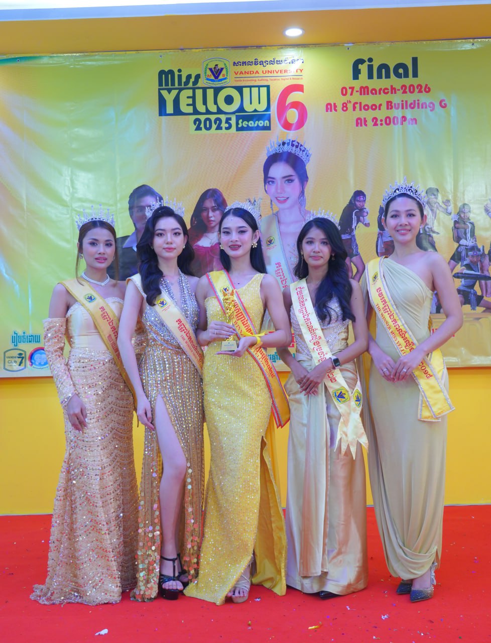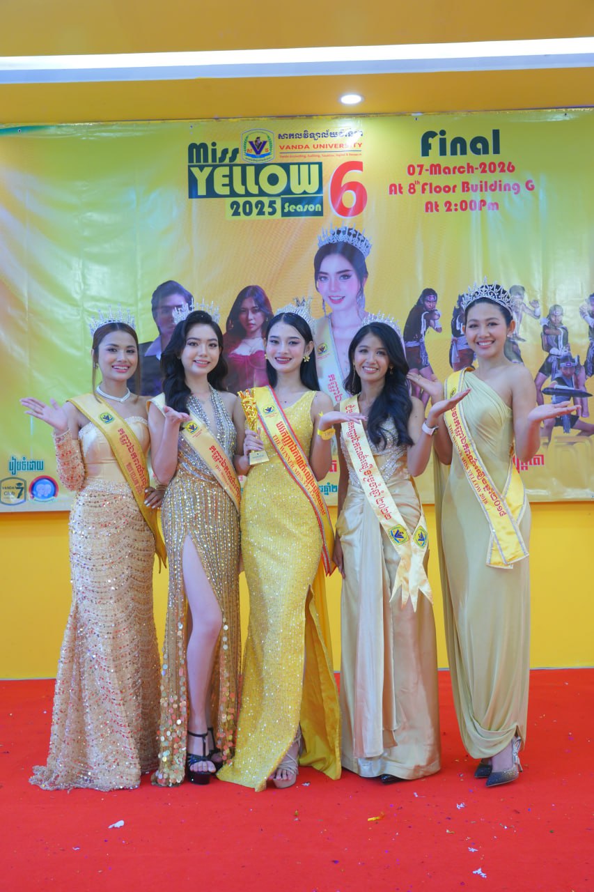 កម្មវិធីប្រកួតប្រជែងកញ្ញាឯកពណ៌លឿង Miss Yellow រដូវកាលទី៦ វគ្គផ្តាច់ព្រ័ត្រ នារសៀលថ្ងៃទី០៧ ខែមីនា ឆ្នាំ២០២៦ ក្រោមអធិបតីភាពដ៏ខ្ពង់ខ្ពស់របស់ ឯកឧត្តមបណ្ឌិត ហេង វ៉ាន់ដា ប្រធានក្រុមប្រឹក្សាភិបាលនៃសាកលវិទ្យាល័យវ៉ាន់ដា និងលោកជំទាវ។