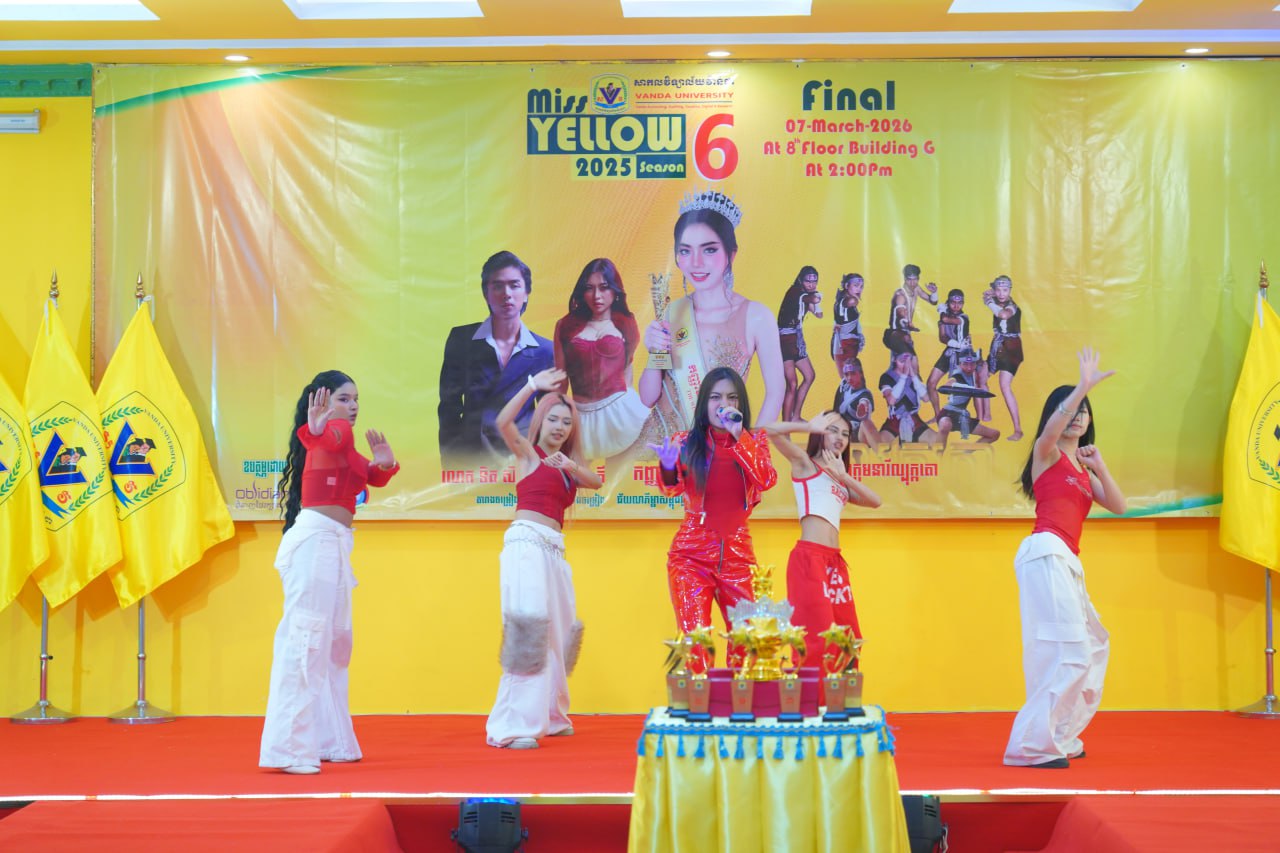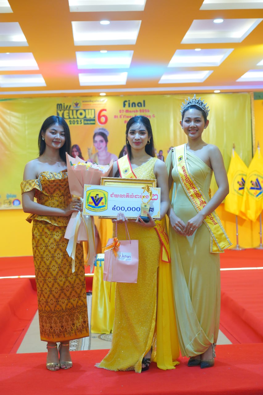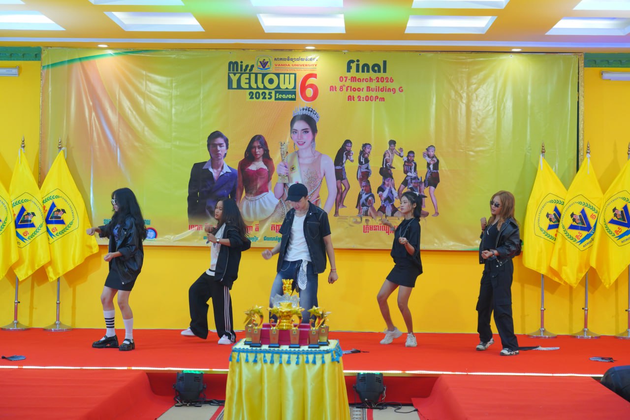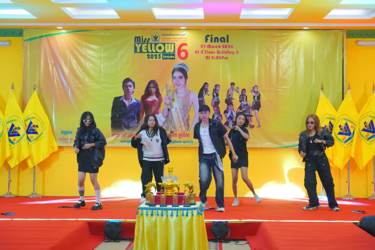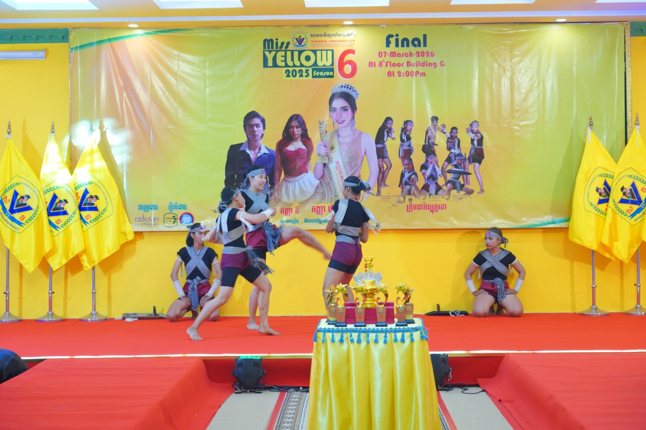 កម្មវិធីប្រកួតប្រជែងកញ្ញាឯកពណ៌លឿង Miss Yellow រដូវកាលទី៦ វគ្គផ្តាច់ព្រ័ត្រ នារសៀលថ្ងៃទី០៧ ខែមីនា ឆ្នាំ២០២៦ ក្រោមអធិបតីភាពដ៏ខ្ពង់ខ្ពស់របស់ ឯកឧត្តមបណ្ឌិត ហេង វ៉ាន់ដា ប្រធានក្រុមប្រឹក្សាភិបាលនៃសាកលវិទ្យាល័យវ៉ាន់ដា និងលោកជំទាវ។