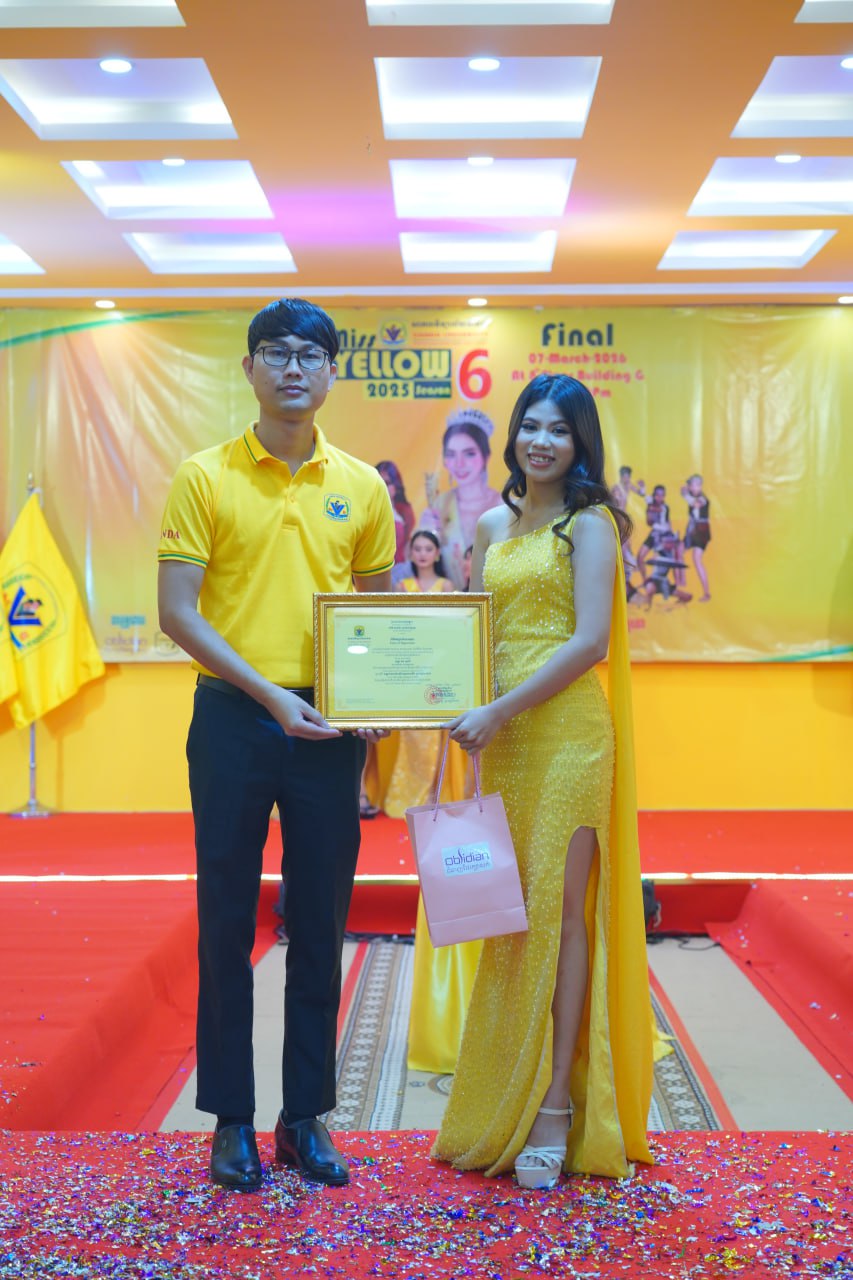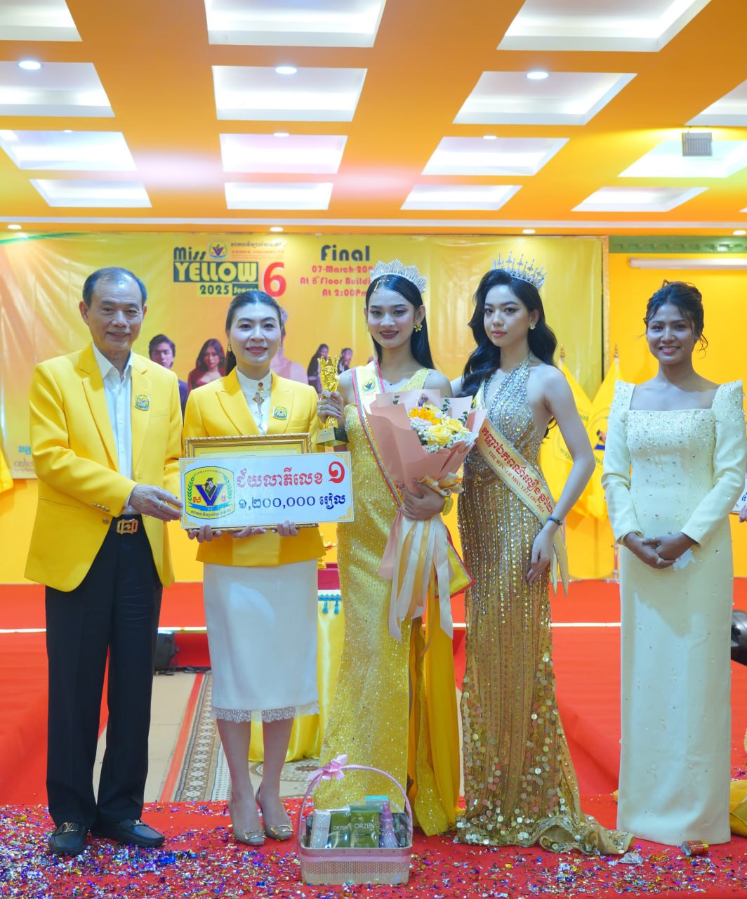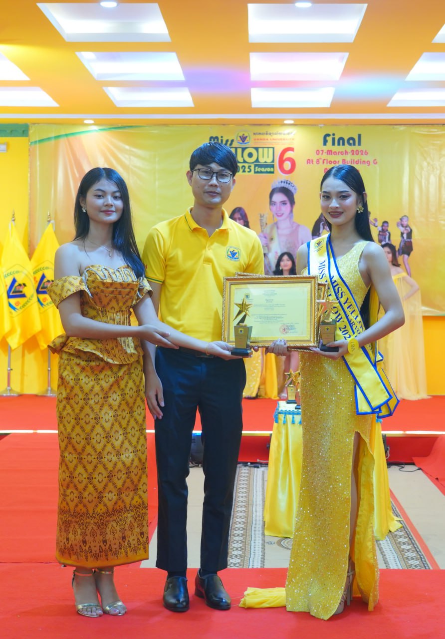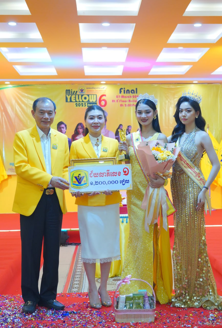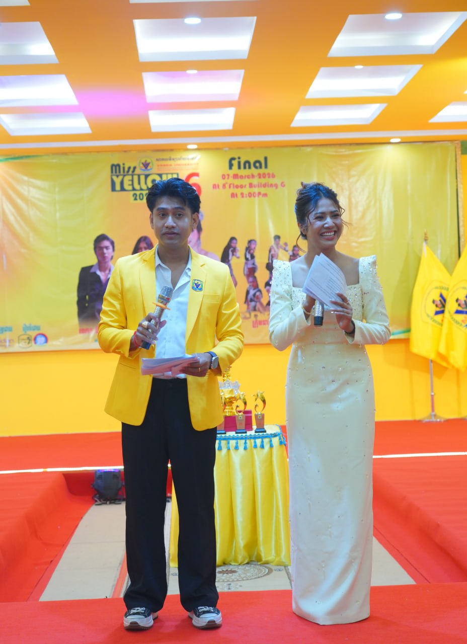កម្មវិធីប្រកួតប្រជែងកញ្ញាឯកពណ៌លឿង Miss Yellow រដូវកាលទី៦ វគ្គផ្តាច់ព្រ័ត្រ នារសៀលថ្ងៃទី០៧ ខែមីនា ឆ្នាំ២០២៦ ក្រោមអធិបតីភាពដ៏ខ្ពង់ខ្ពស់របស់ ឯកឧត្តមបណ្ឌិត ហេង វ៉ាន់ដា ប្រធានក្រុមប្រឹក្សាភិបាលនៃសាកលវិទ្យាល័យវ៉ាន់ដា និងលោកជំទាវ។