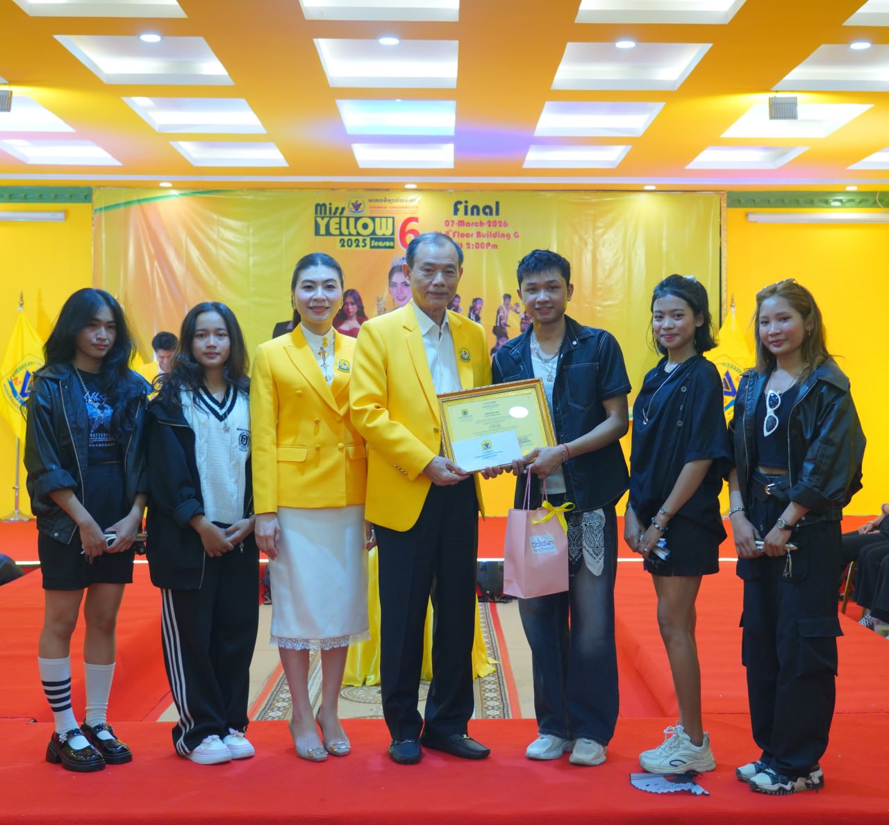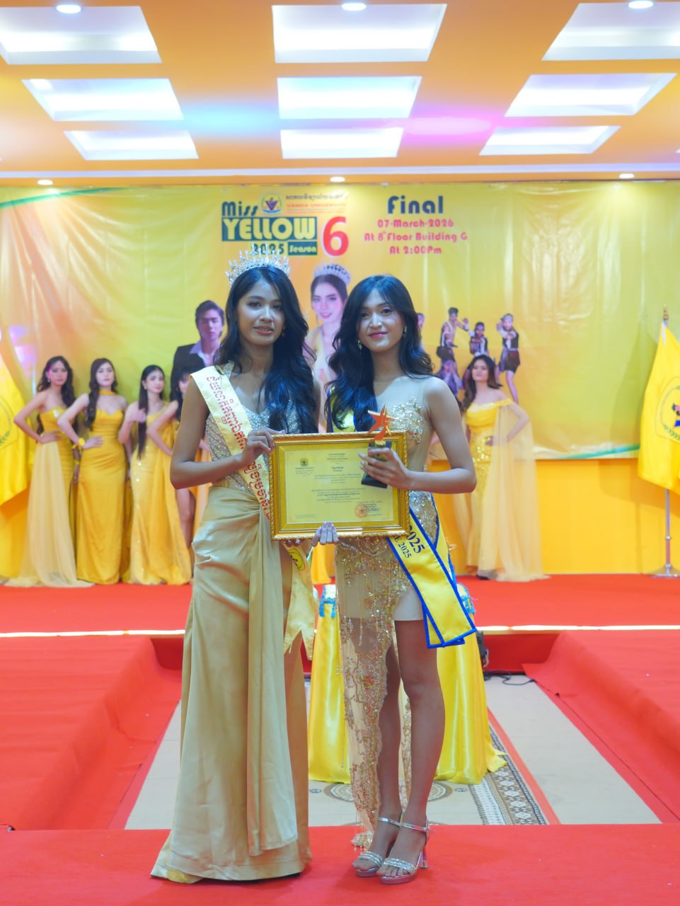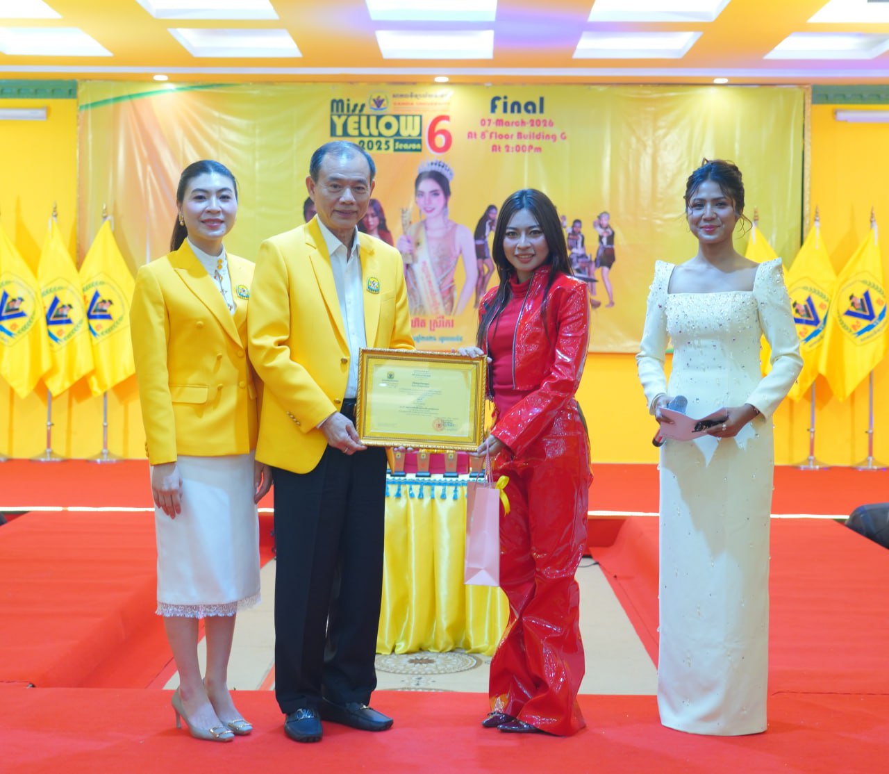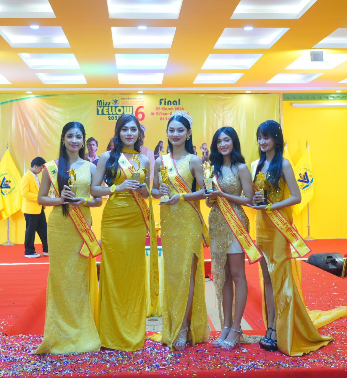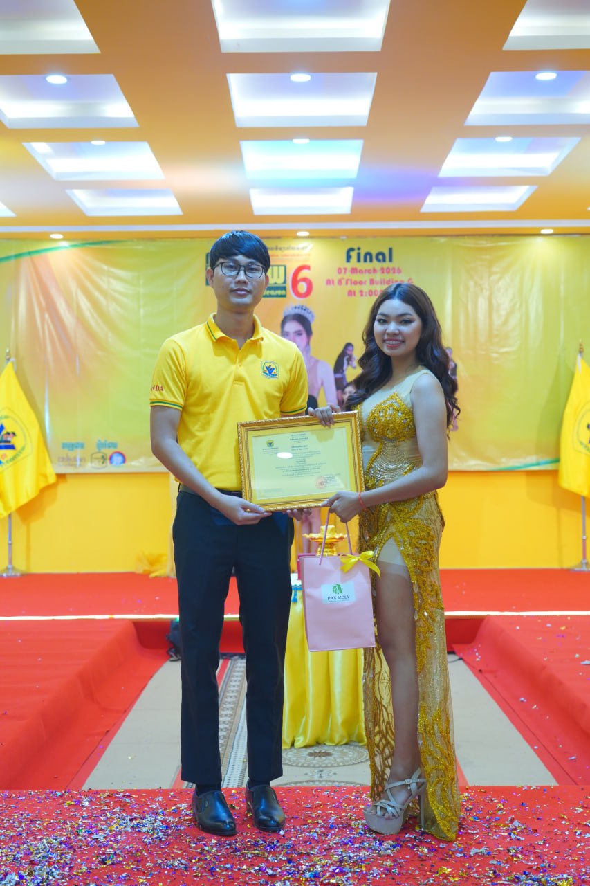 កម្មវិធីប្រកួតប្រជែងកញ្ញាឯកពណ៌លឿង Miss Yellow រដូវកាលទី៦ វគ្គផ្តាច់ព្រ័ត្រ នារសៀលថ្ងៃទី០៧ ខែមីនា ឆ្នាំ២០២៦ ក្រោមអធិបតីភាពដ៏ខ្ពង់ខ្ពស់របស់ ឯកឧត្តមបណ្ឌិត ហេង វ៉ាន់ដា ប្រធានក្រុមប្រឹក្សាភិបាលនៃសាកលវិទ្យាល័យវ៉ាន់ដា និងលោកជំទាវ។