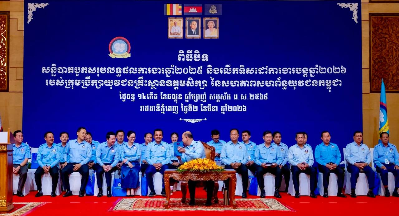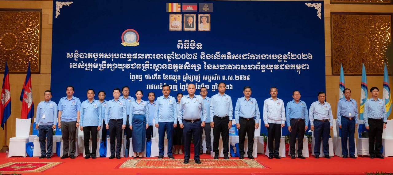 His Excellency HUOT Hak, Minister of Tourism and Member of the Standing Committee of the Central Committee of the Union of Youth Federations of Cambodia, attended the closing ceremony of the 2025 Annual Review Conference and the 2026 Work Direction Planning Meeting of the Youth Council of Higher Education Institutions (YCHEI) under the Union of Youth Federations of Cambodia (UYFC).