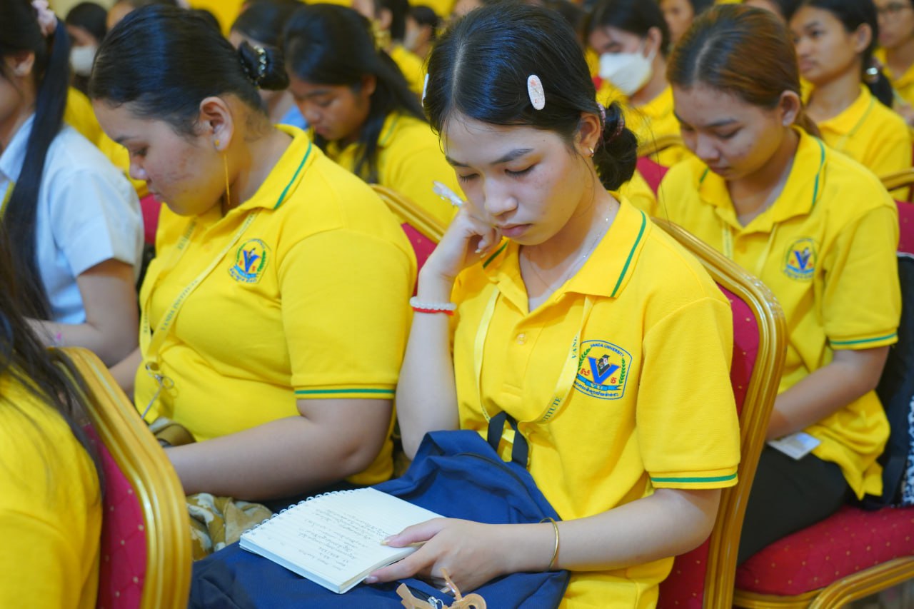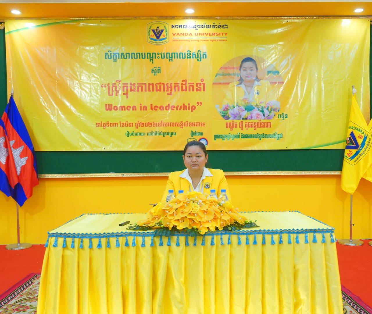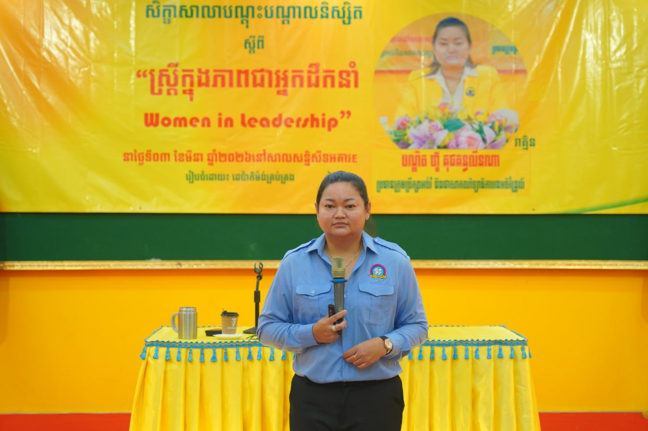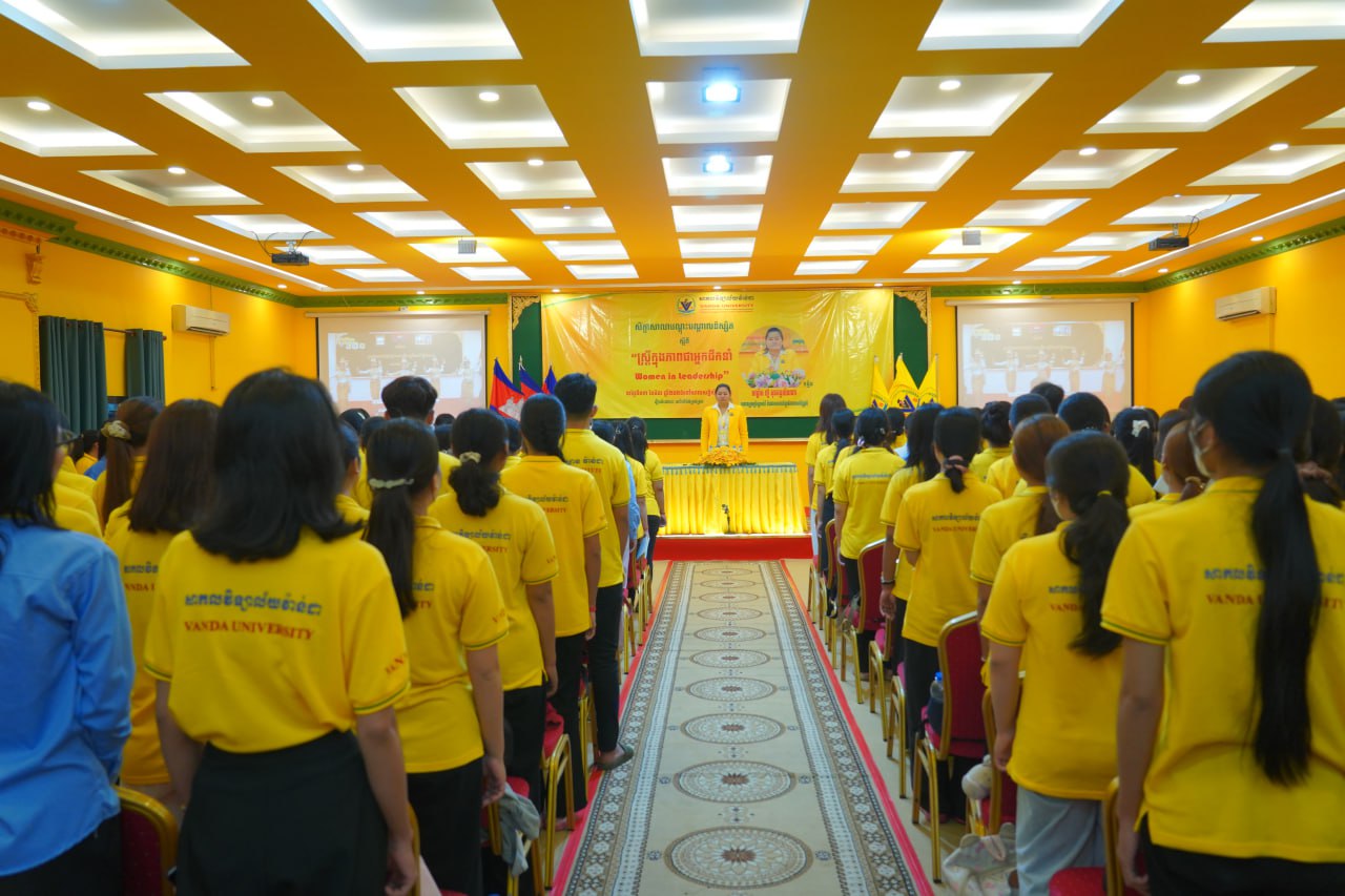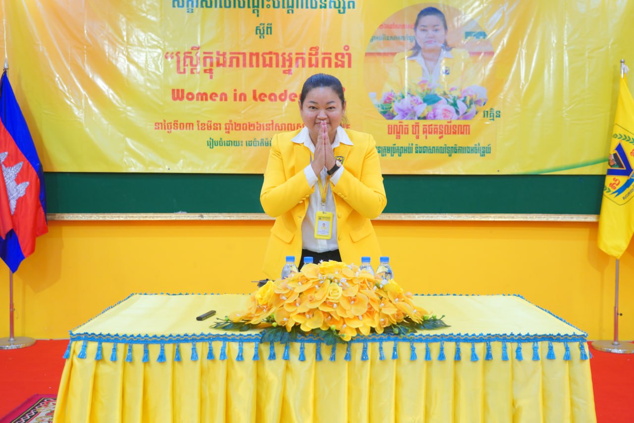 នាព្រឹកថ្ងៃទី០៣ ខែមីនា ឆ្នាំ២០២៦ ដេប៉ាម៉ង់គ្រប់គ្រងនៃមហាវិទ្យាល័យធុរកិច្ច បានរៀបចំសិក្ខាសាលាបណ្តុះបណ្តាលនិស្សិត ស្តីពី “ស្រ្តីក្នុងភាពជាអ្នកដឹកនាំ” វាគ្មិនកត្តិយស បណ្ឌិត ហ៊ូ គុជគន្ធលីនណា ប្រធានក្រុមប្រឹក្សាអប់រំ និងជាសាកលវិទ្យាធិការរងអចិន្រ្តៃយ៍ នៃសាកលវិទ្យាល័យវ៉ាន់ដា ដើម្បីបន្ថែមនូវជំនាញទន់ដល់និស្សិតក្នុងការរៀបចំខ្លួនដើម្បីក្លាយជាអ្នកដឹកនាំស្រ្តីនាថ្ងៃអនាគត។